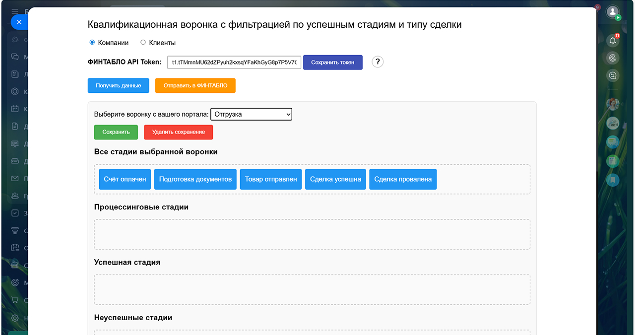* Простота Внедрения: Решение легко настраивается под ваши поля в Битрикс24 и структуру в Финтабло. Не требует глубоких технических знаний для использования.