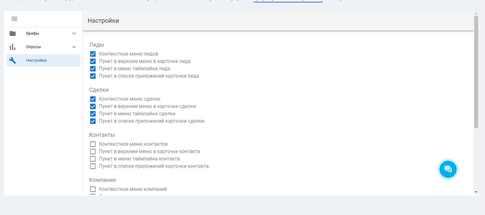 Решение позволит централизованно получать и обработать обратную связь клиента, при этом данные опроса или брифа будут сохранены и привязаны к объекту CRM (сделке, лиду, контакту, компании, предложению, делу).