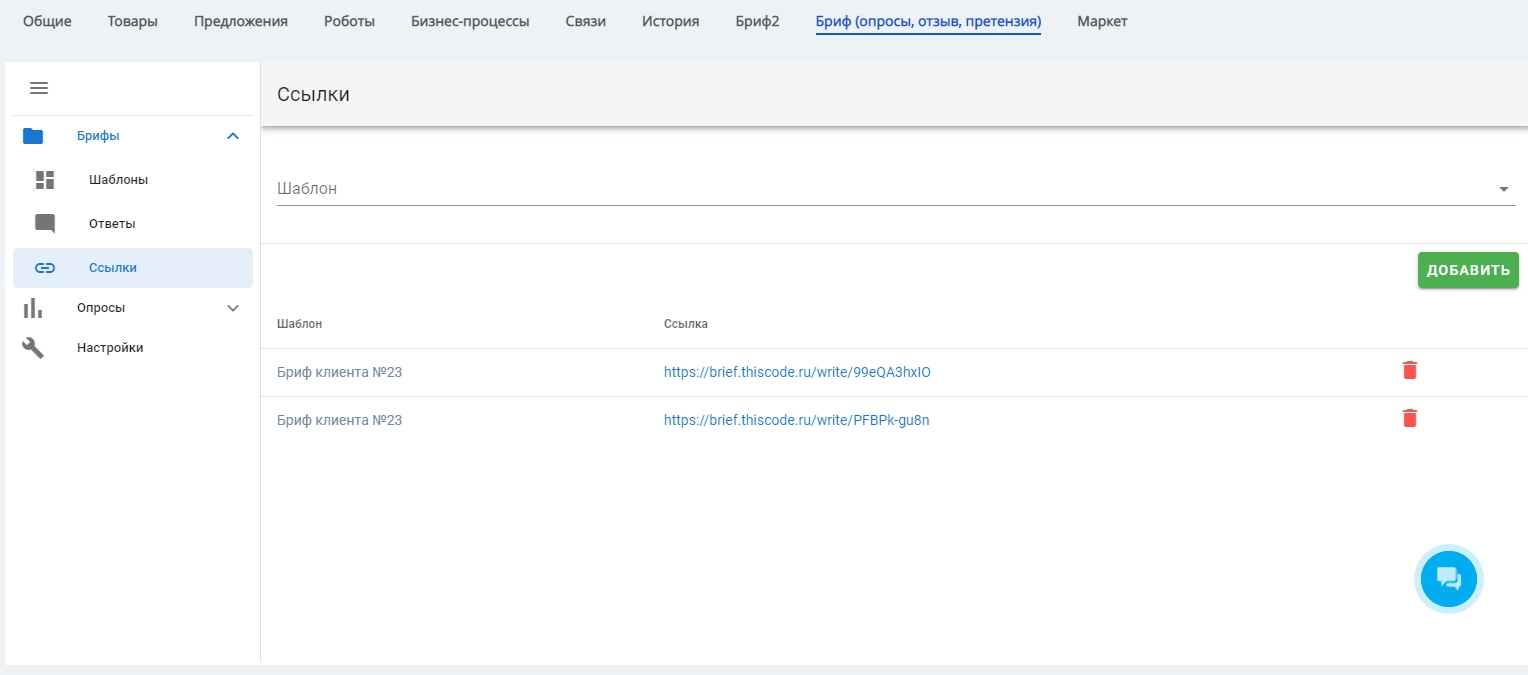 Бриф привязывается в объекту CRM, каждый бриф уникален, заполняется один раз.