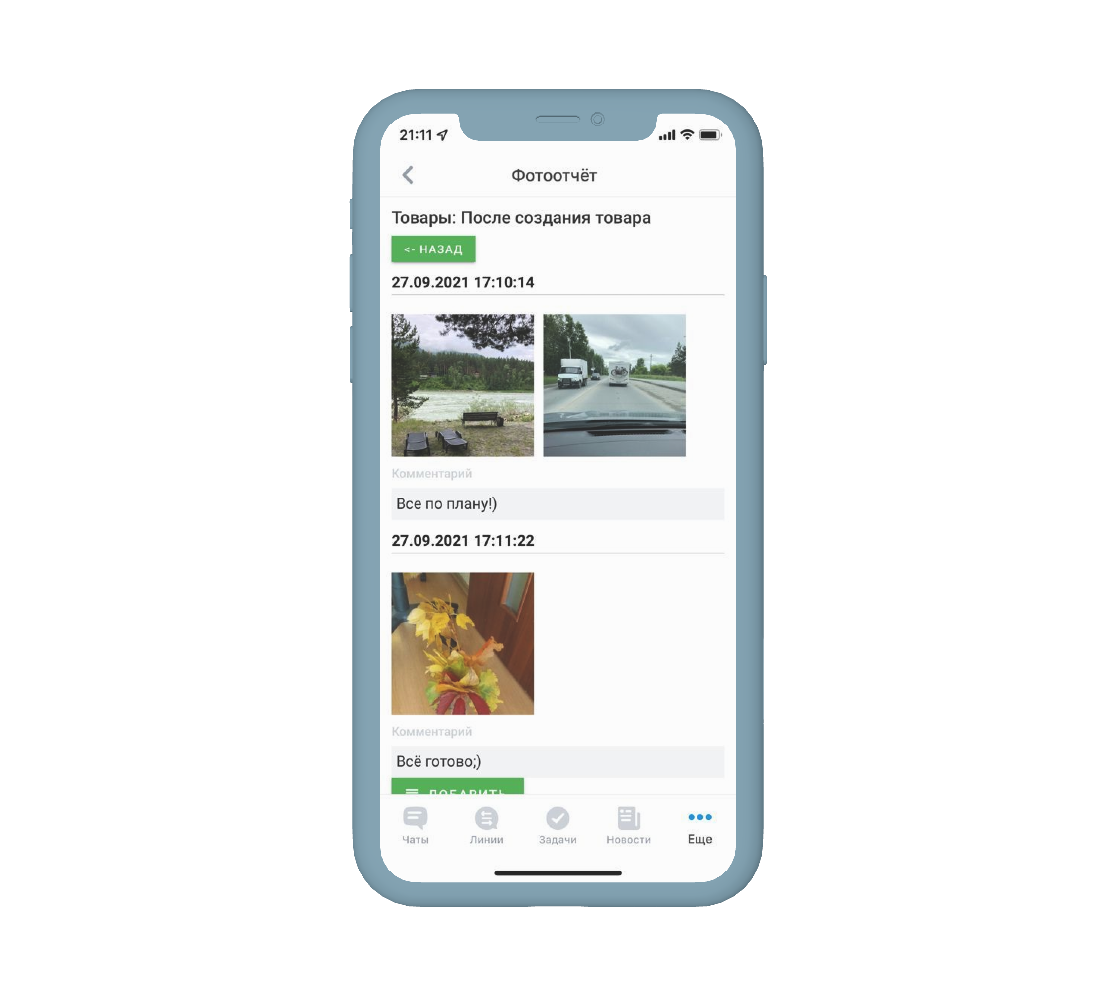 Сотрудник может с лёгкостью добавлять фотоотчёты через мобильное приложение Битрикс24: