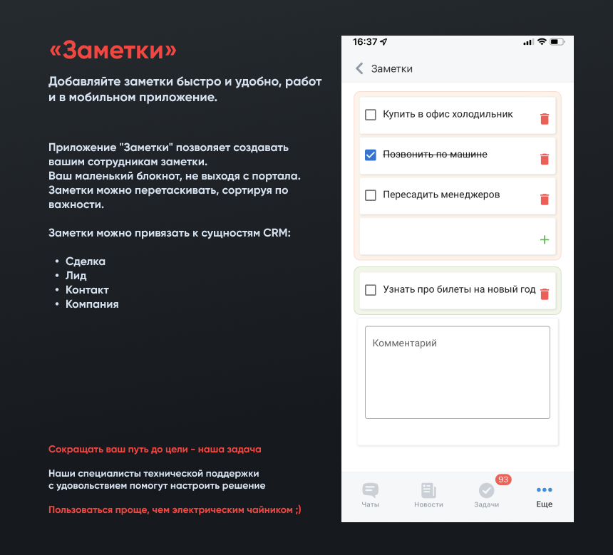 Наше приложение поможет вам быстро и удобно добавлять заметки в CRM .