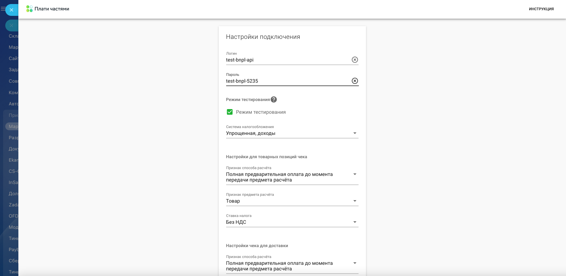 - Возможность проведения тестовых платежей.