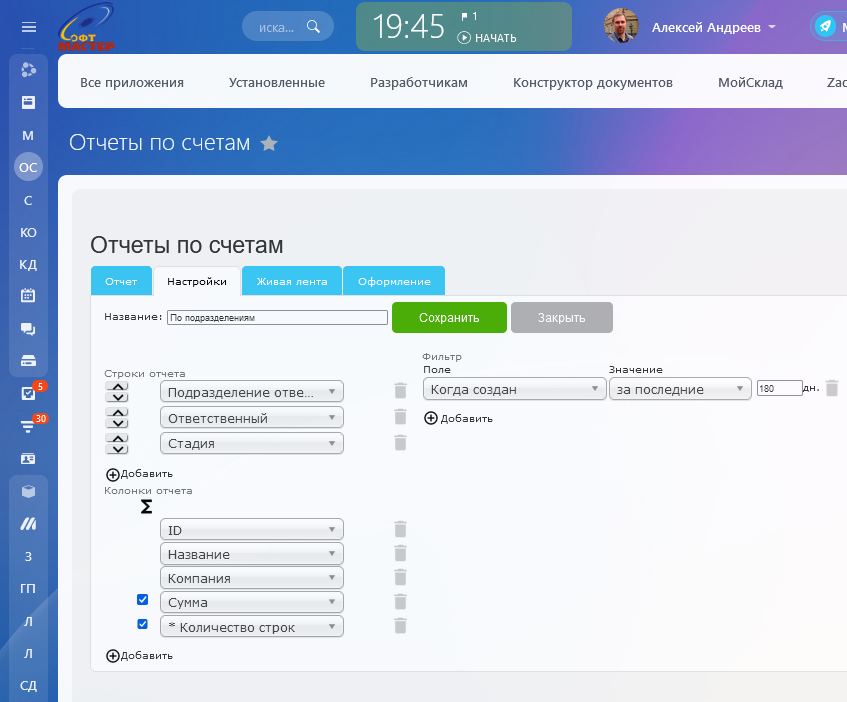 Приложение Отчеты по счетам – позволяет формировать любые отчеты до данным счетов Битрикс24 с использованием нескольких уровней группировки. Для настройки отчета используется удобный мастер.