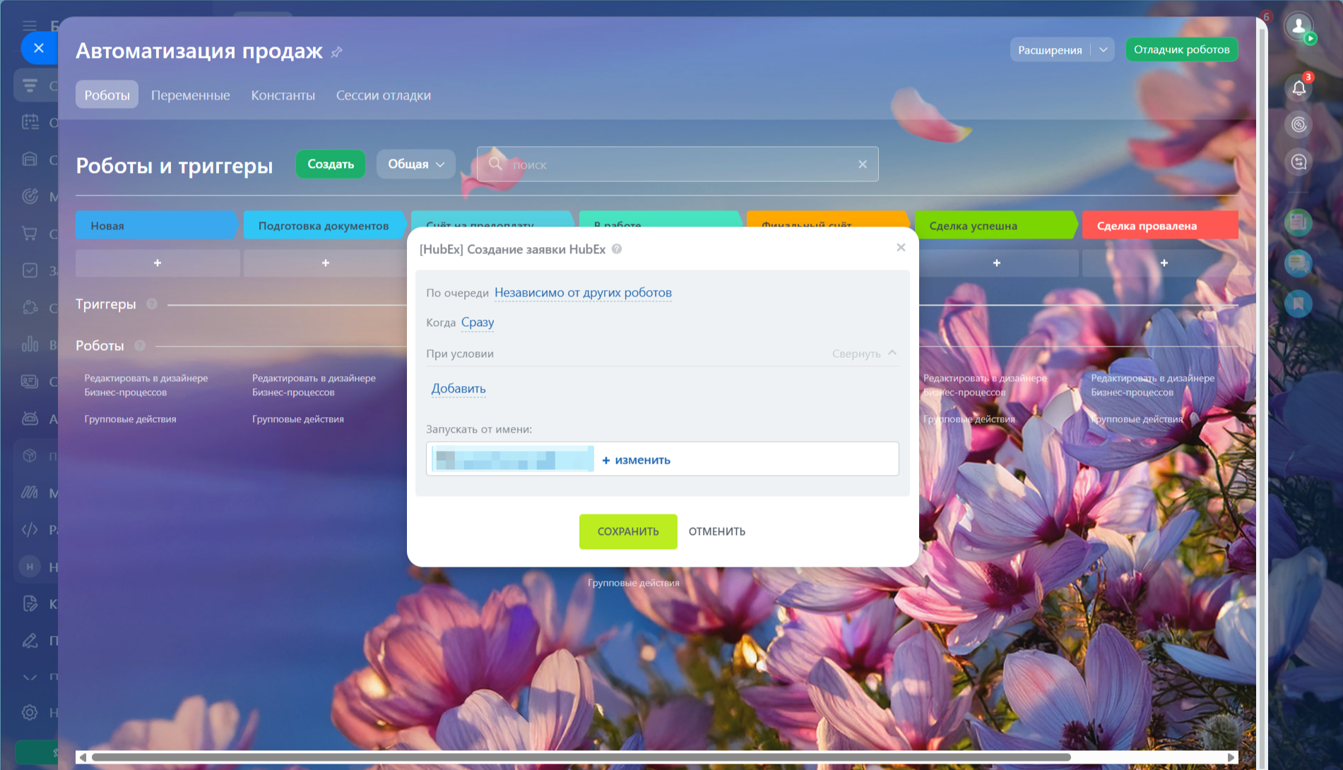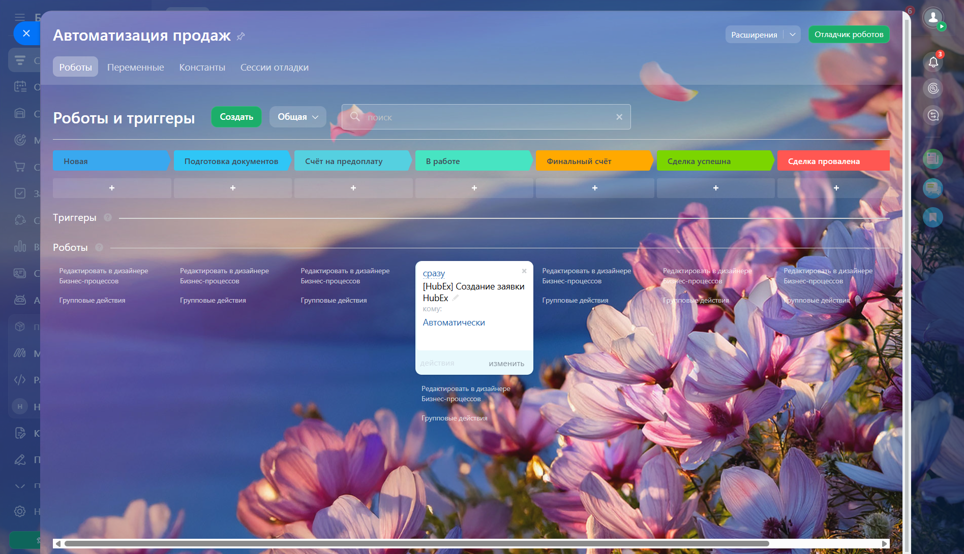 • После завершения работы специалистами в HubEx, сделка в Битрикс24 автоматически переводится на следующую, заранее заданную стадию.