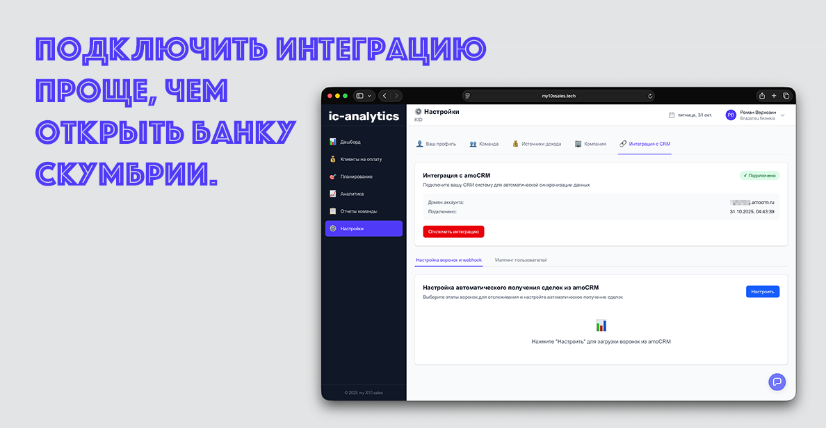 настройка этапов воронок и маппинга пользователей не требует технических знаний;