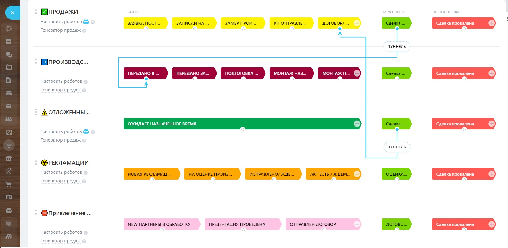 CRM производство мебели помогает работать как компании внутри, так и с клиентами в автоматическом режиме. В данном решении корректно учтены все этапы для правильного расчета конверсии, контроля менеджеров и отработки рекламного бюджета! Автоматические Вотсап и смс сообщения удерживают клиента, пока он особенно горячий, в течение 7 дней. Мы стремимся свести к минимуму трудозатраты и человеческий фактор. Готовая CRM прекрасно справляется с этой задачей!
