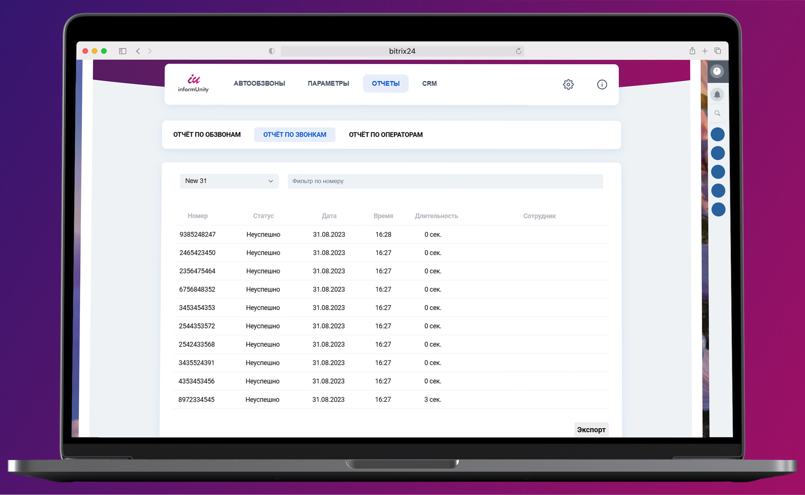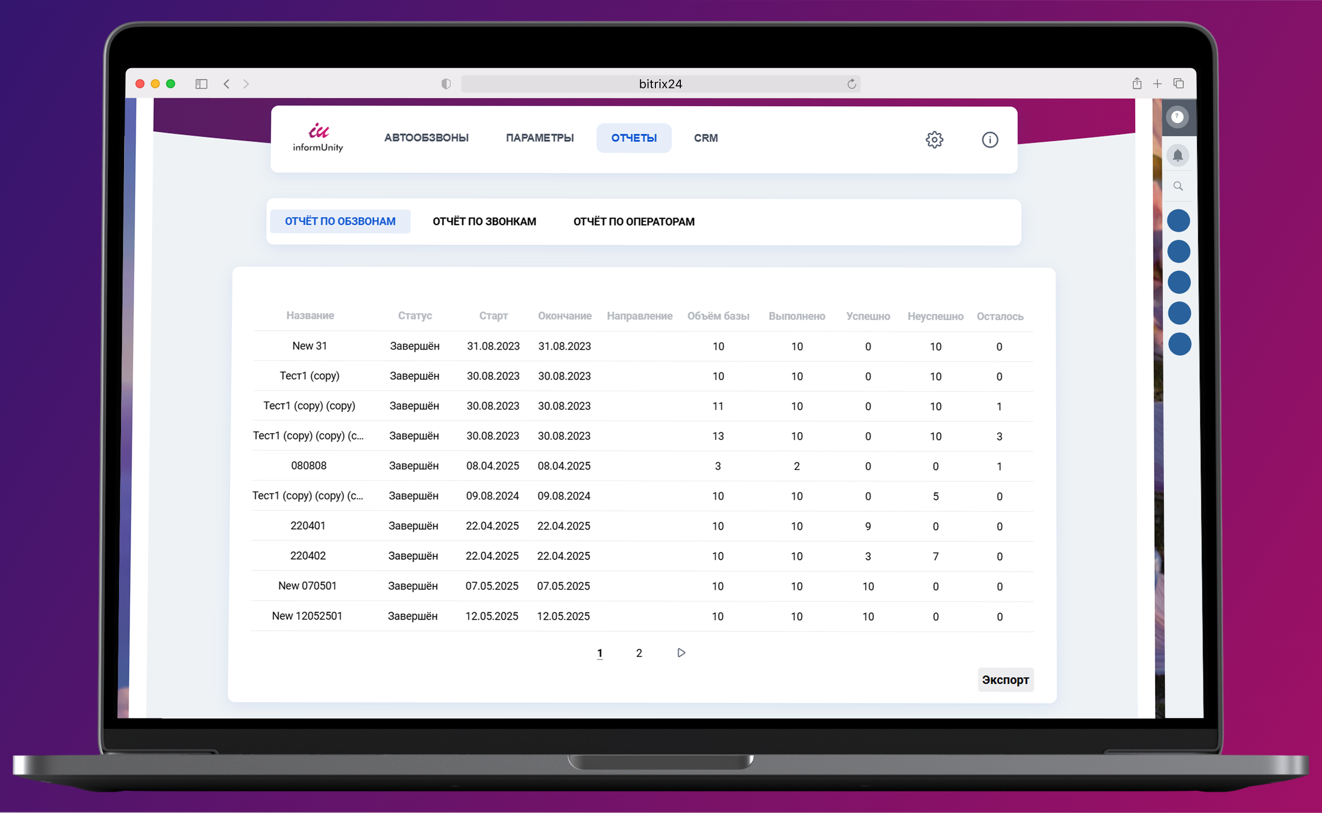 Подробные отчеты: анализируйте эффективность обзвонов, звонков и работу операторов с помощью встроенных отчетов.