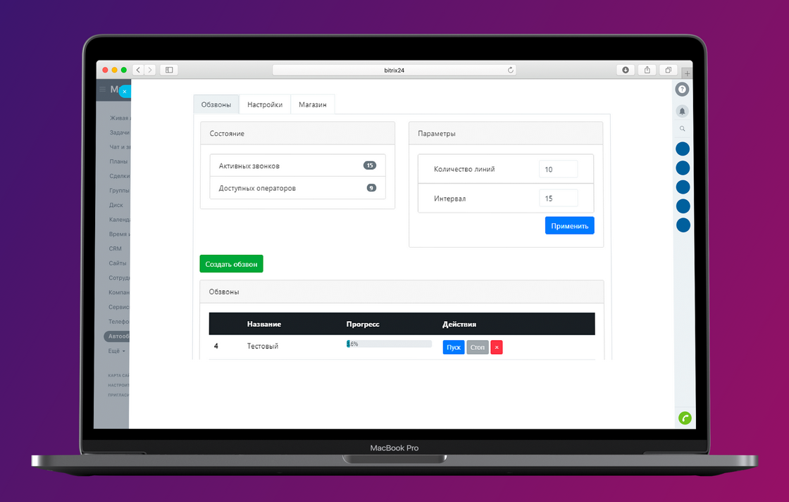 - запускать/останавливать обзвон;
