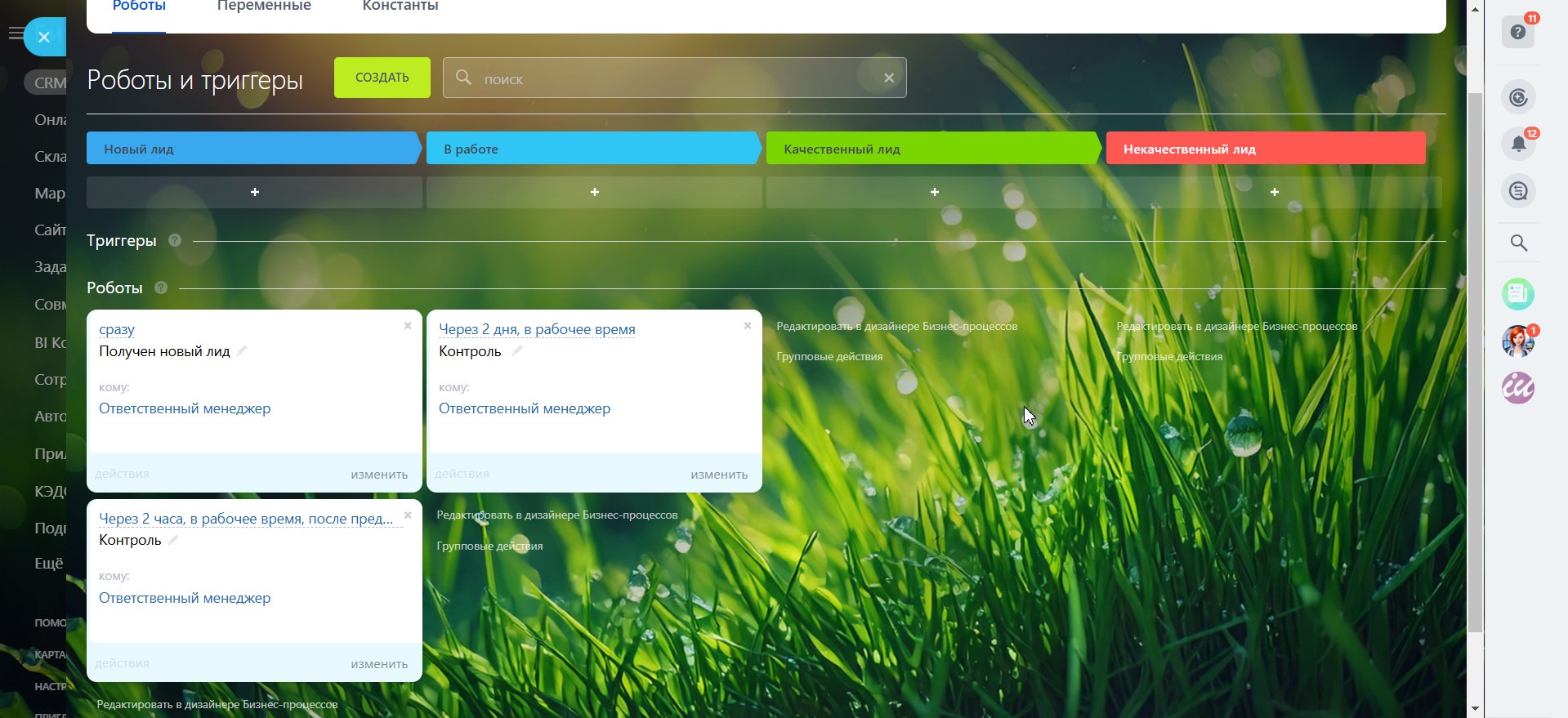 - Сотрудник не забудет про клиента, т.к. для своевременной реакции сотрудников на обращения клиентов уже настроены автоматические уведомления и задачи от системы.