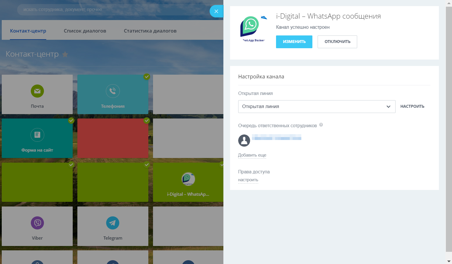 Приложение позволяет общаться с клиентами в мессенджере WhatsApp и обрабатывать входящие сообщения через канал открытых линий.