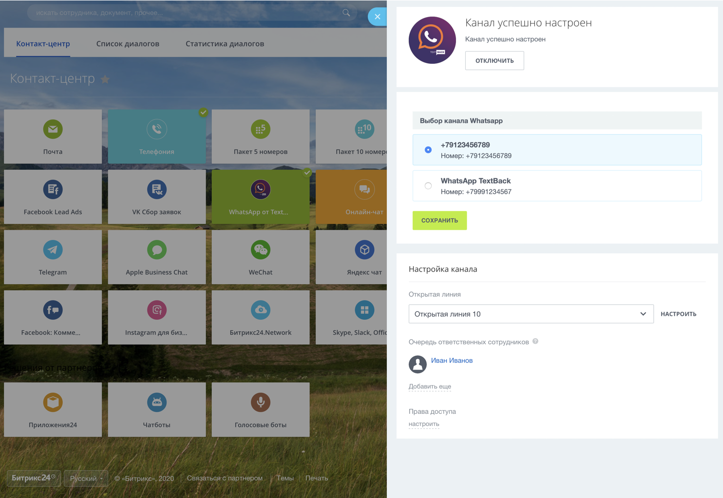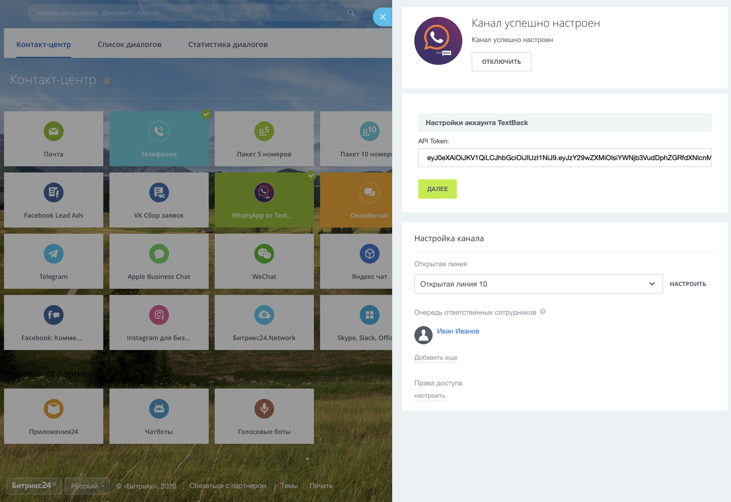 - Интеграция с WhatsApp от Textback — отправляйте сообщения в WhatsApp клиентам прямо из Битрикс24, без блокировок номера;