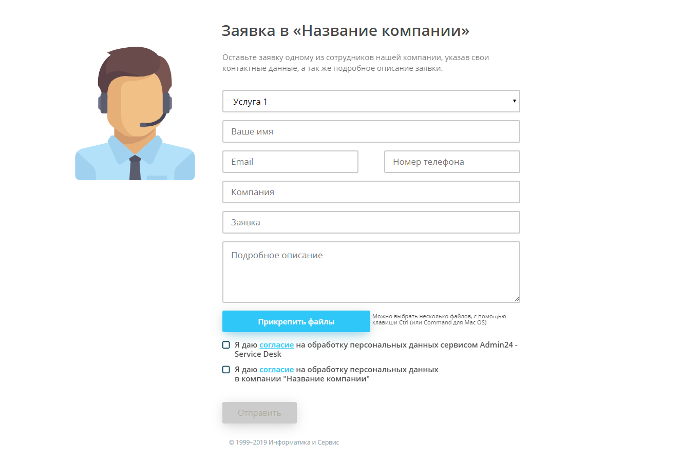 - Для налаживания процесса взаимодействия с сотрудниками клиента, отправьте им ссылку на форму, при помощи которой можно подать заявку в случае возникновения инцидента. Или разместите форму на своем сайте.