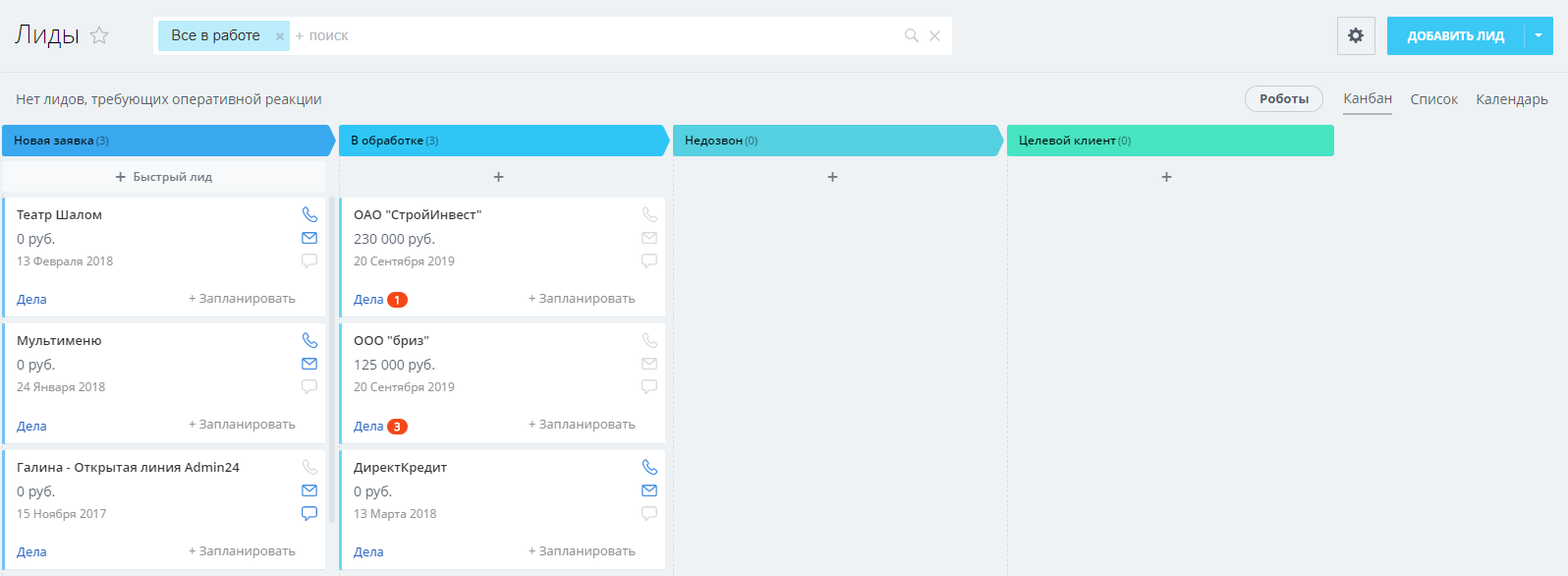 - Настроенные воронки Лидов и Сделок.