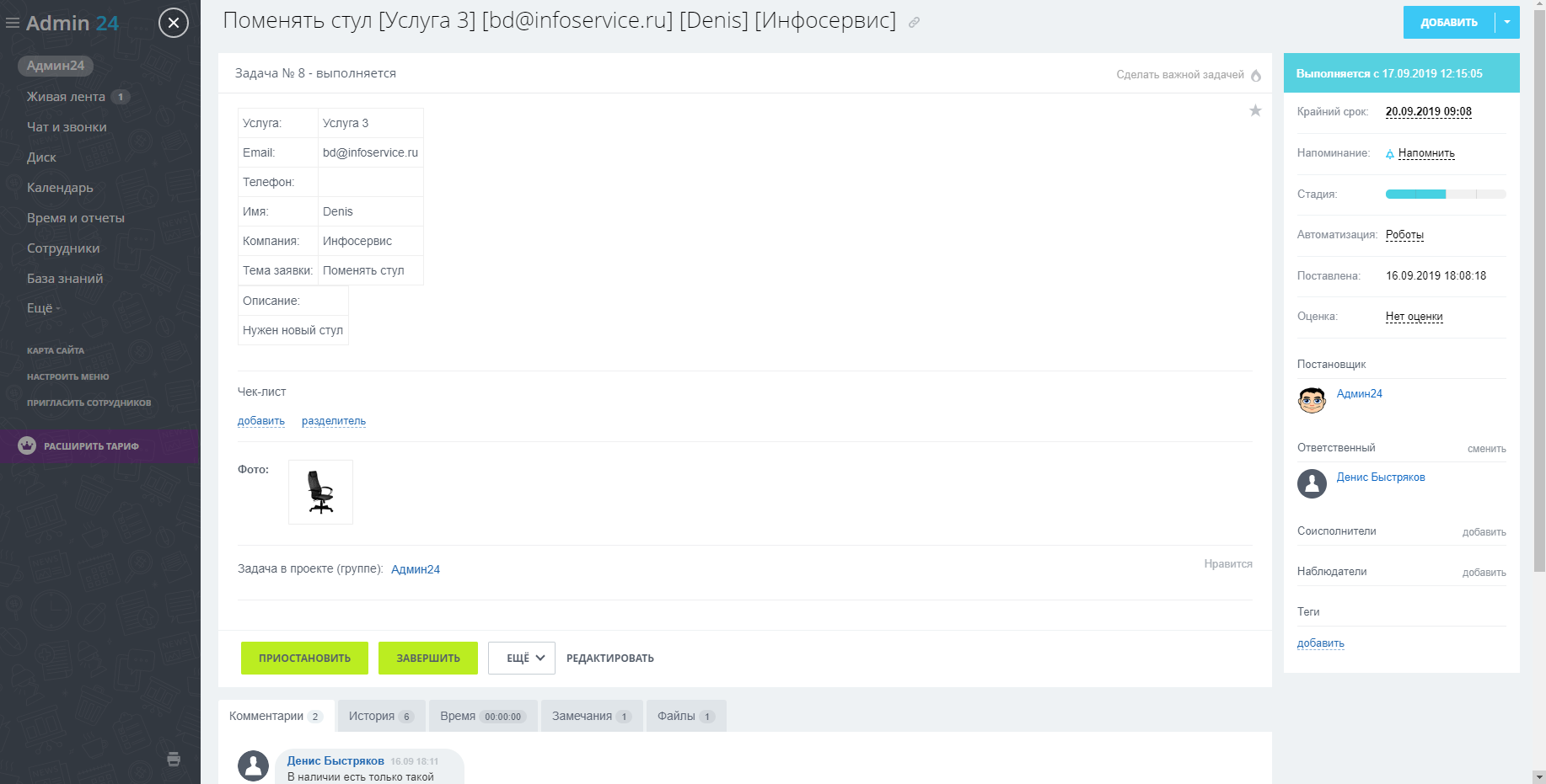 3. Получайте заявки в виде уже сформированных задач в Битрикс24. Контролируйте время выполнения заявок, оставляйте комментарии к задачам и упростите планирование с помощью канбан-досок.