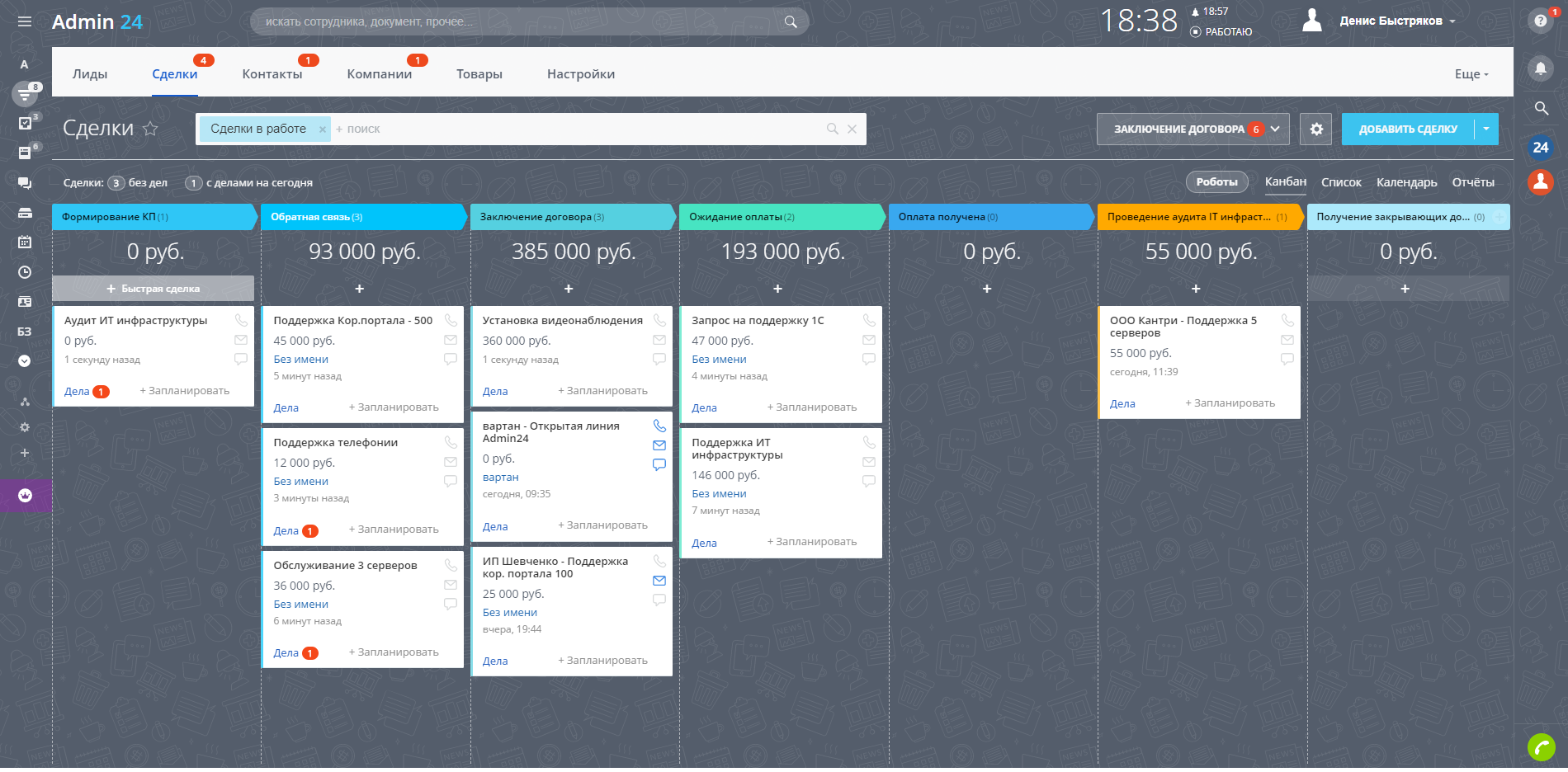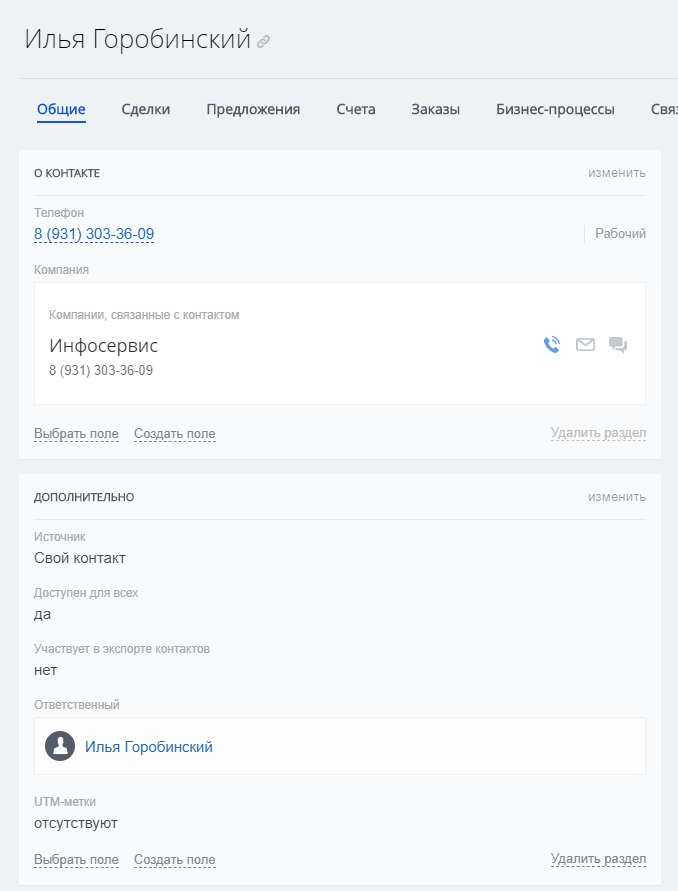 - Настроенные карточки CRM.