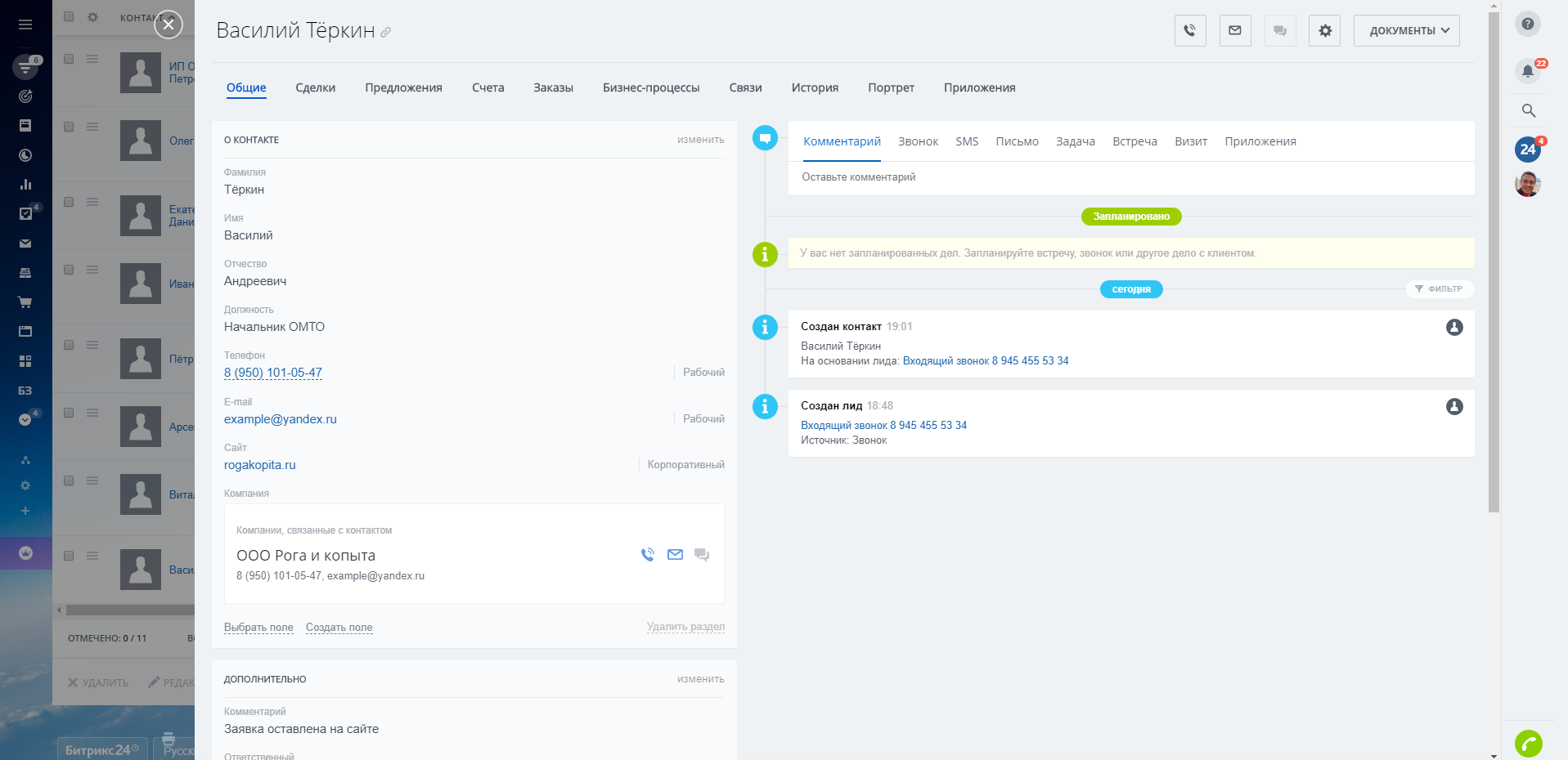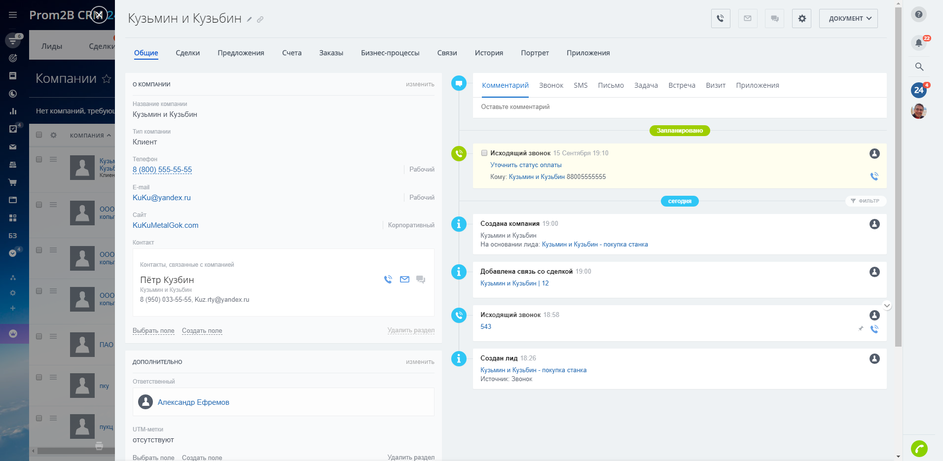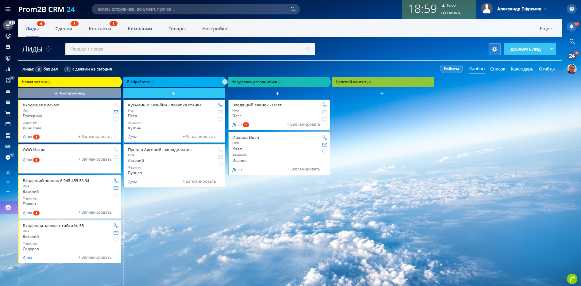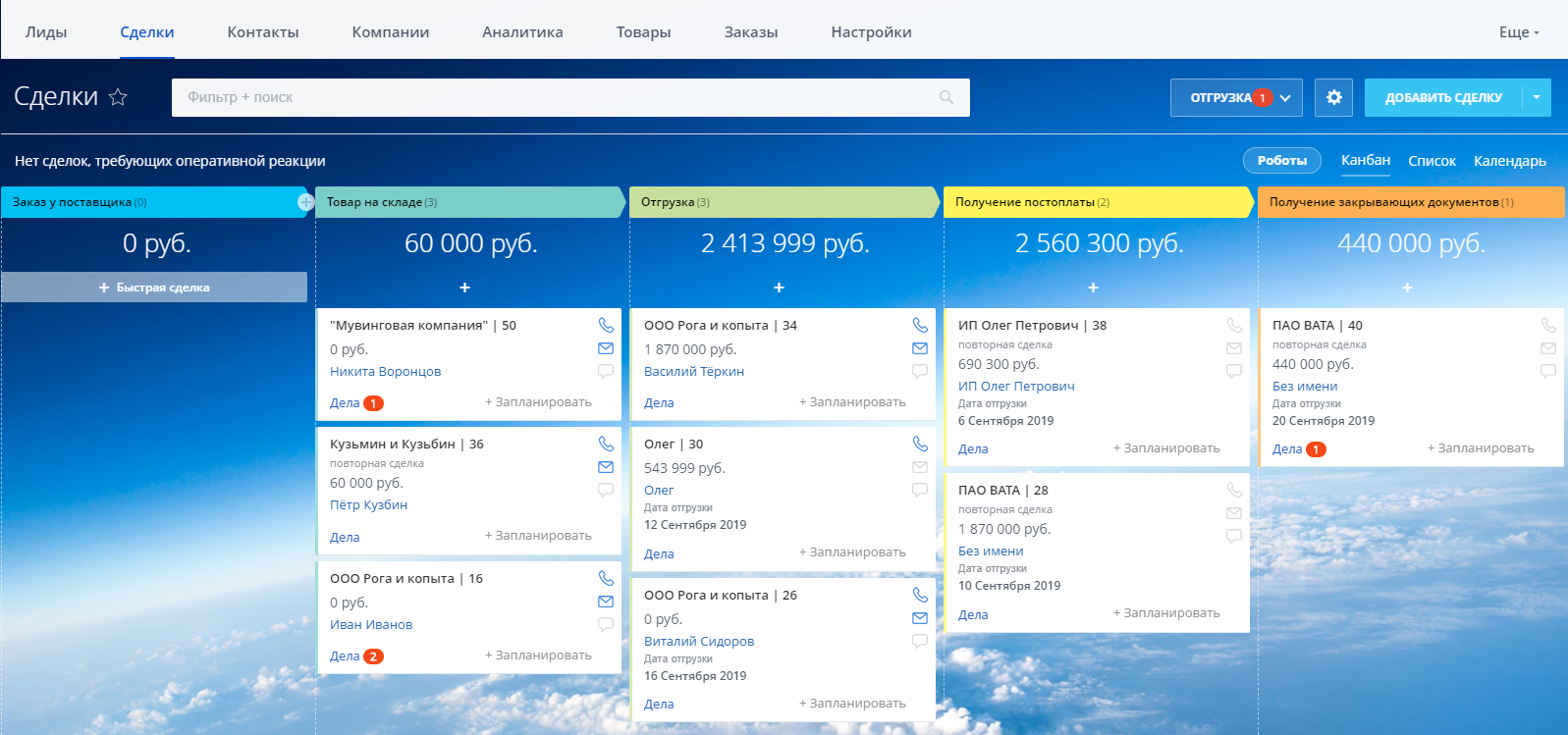 - Настроенные воронки Лидов и Сделок;