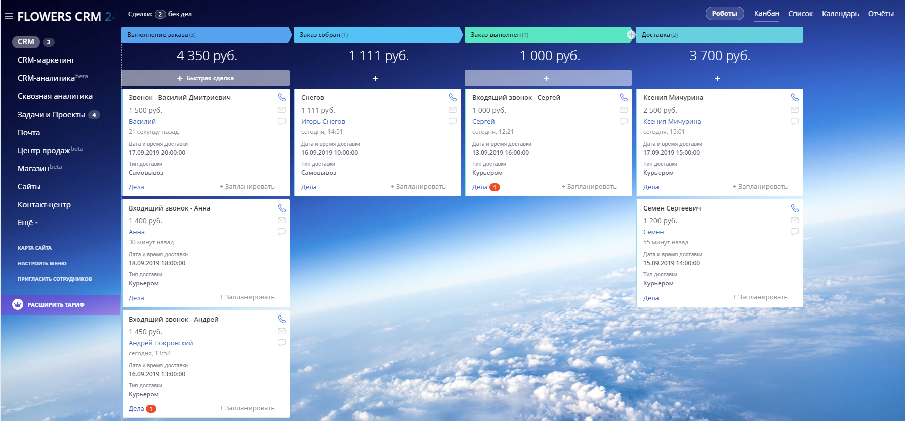 - Автоматизируйте продажи с момента обращения клиента до вручения букета. Храните историю взаимодействия с клиентами в единой базе. Дарите скидки и подарки лояльным клиентам.