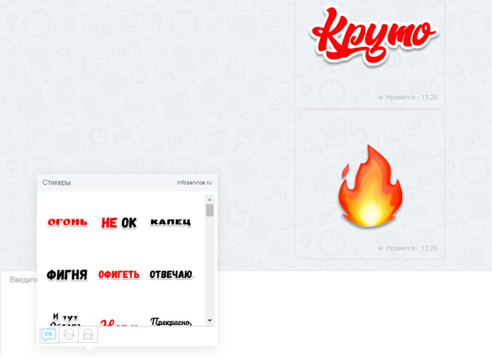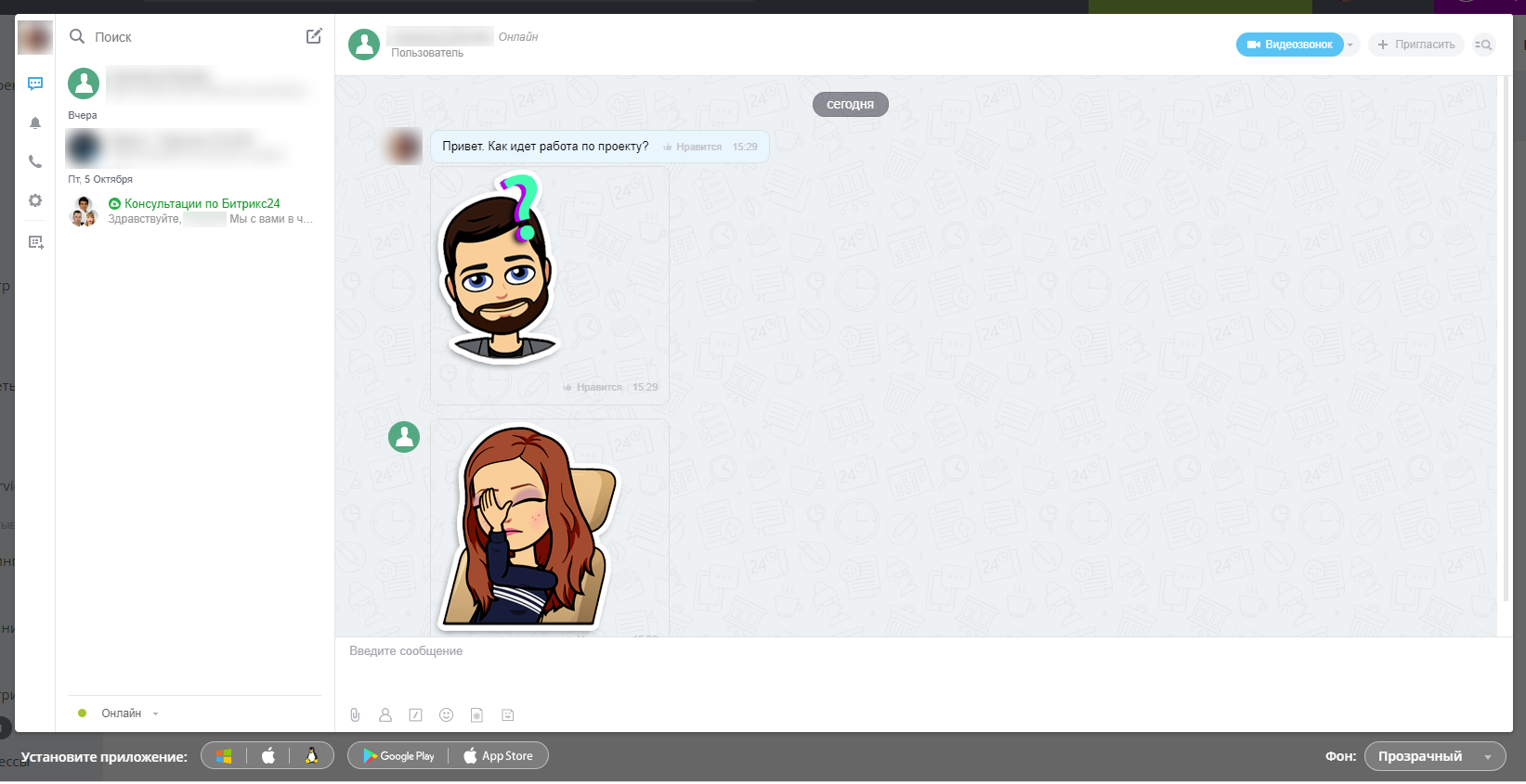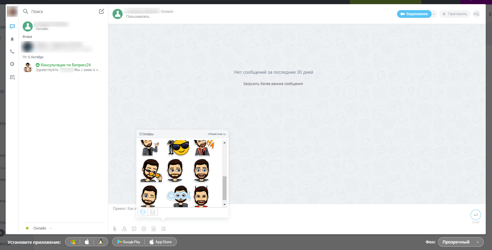 Приложение позволяет отправлять стикеры в чате Битрикс24.