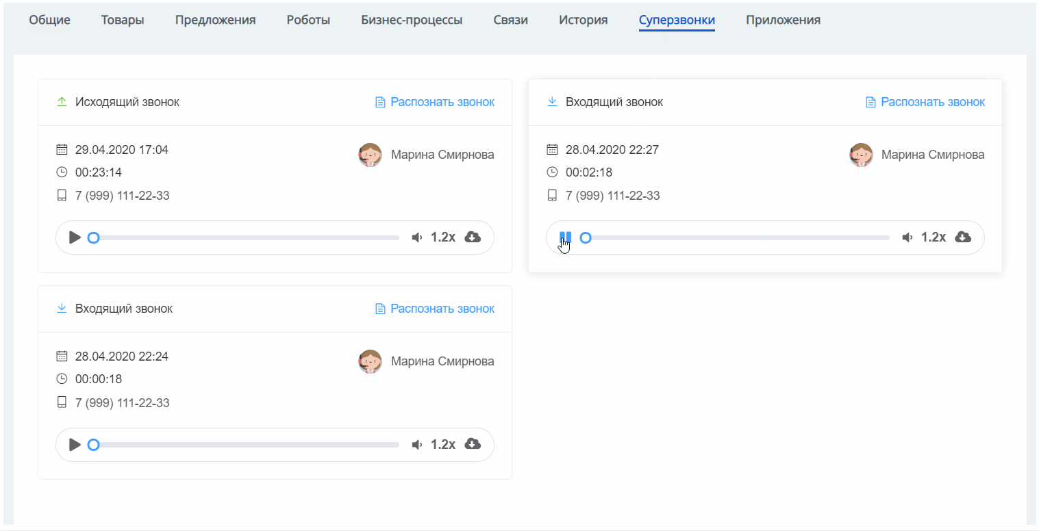 С помощью «Суперзвонков» слушать записи звонков в Битрикс24 удобнее. Приложение сокращает время прослушивания разговоров с клиентами до 2 раз. Руководитель отдела продаж сможет эффективнее оценивать работу операторов, выявлять причины проигранных и успешных сделок. Маркетологу приложение поможет оперативнее определять потребности клиентов, анализировать их реакцию на продукт и рекламу.