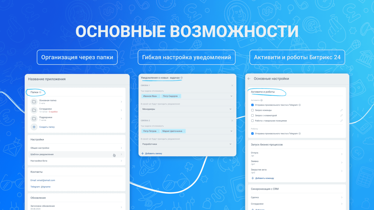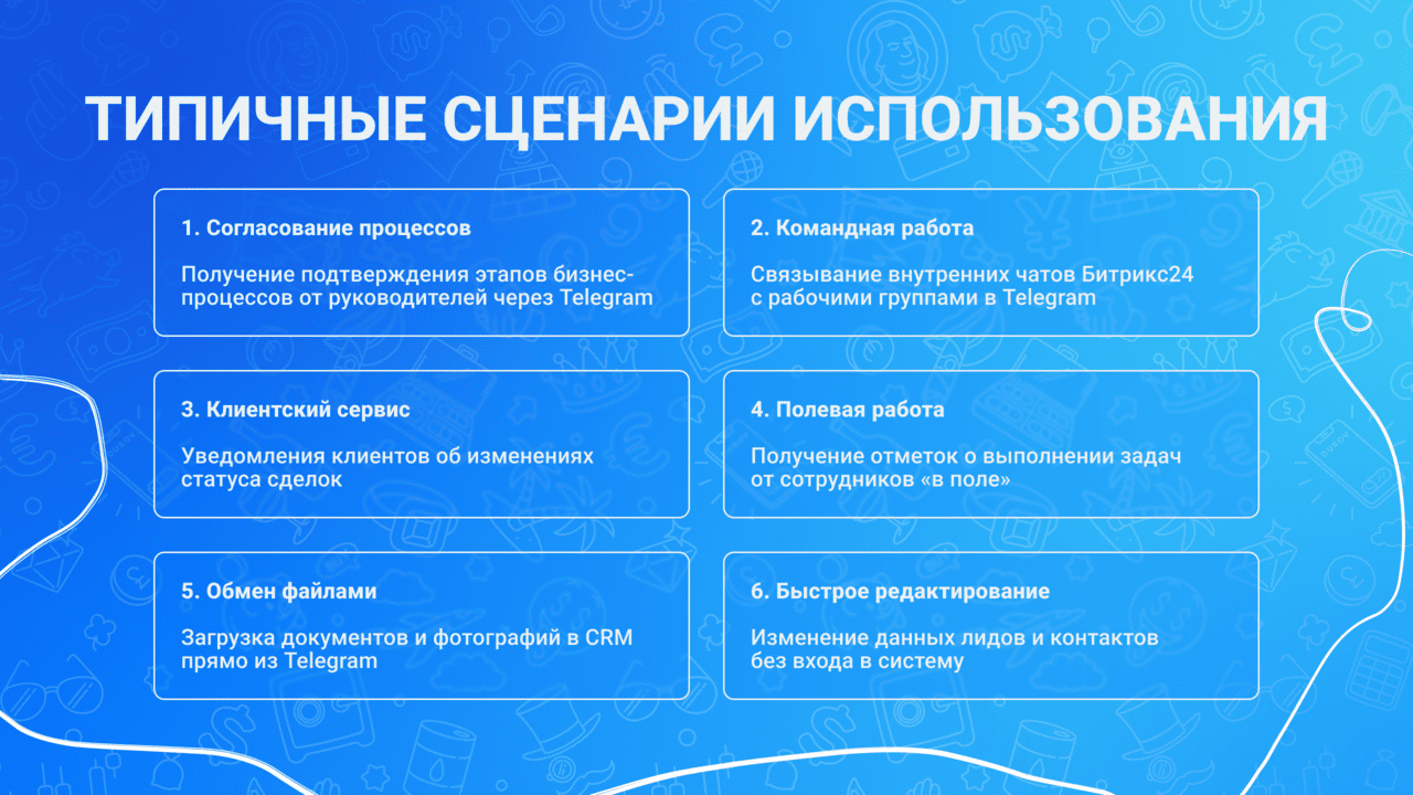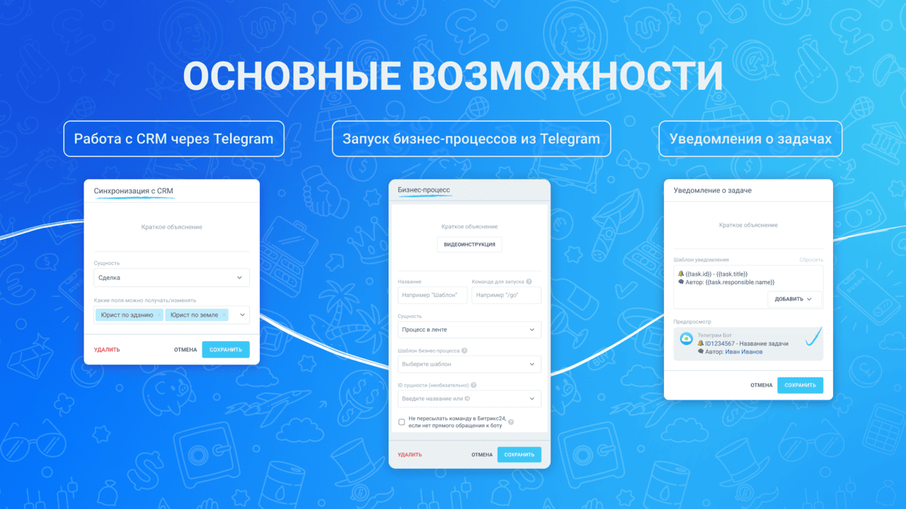 Запускайте процессы, получайте уведомления, работайте с CRM - всё в Telegram