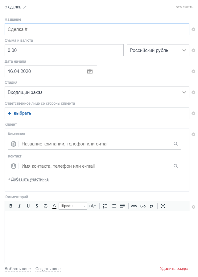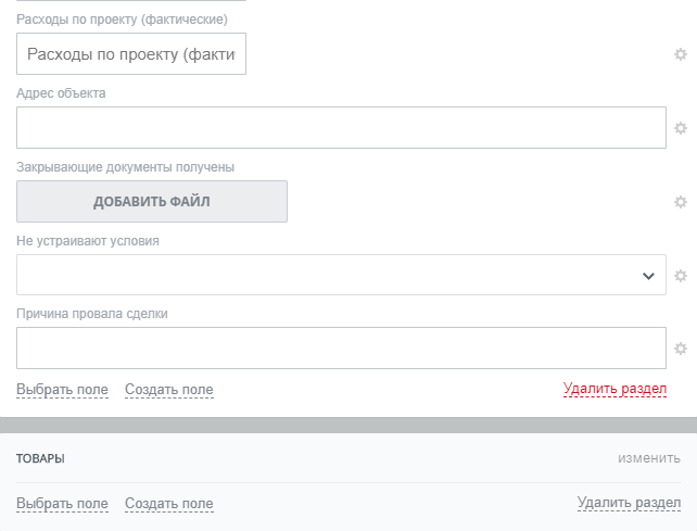 Т.к. каждый бизнес имеет свои особенности и информация, которую необходимо сохранить, в отраслевую CRM были добавлены дополнительные пользовательские поля.
