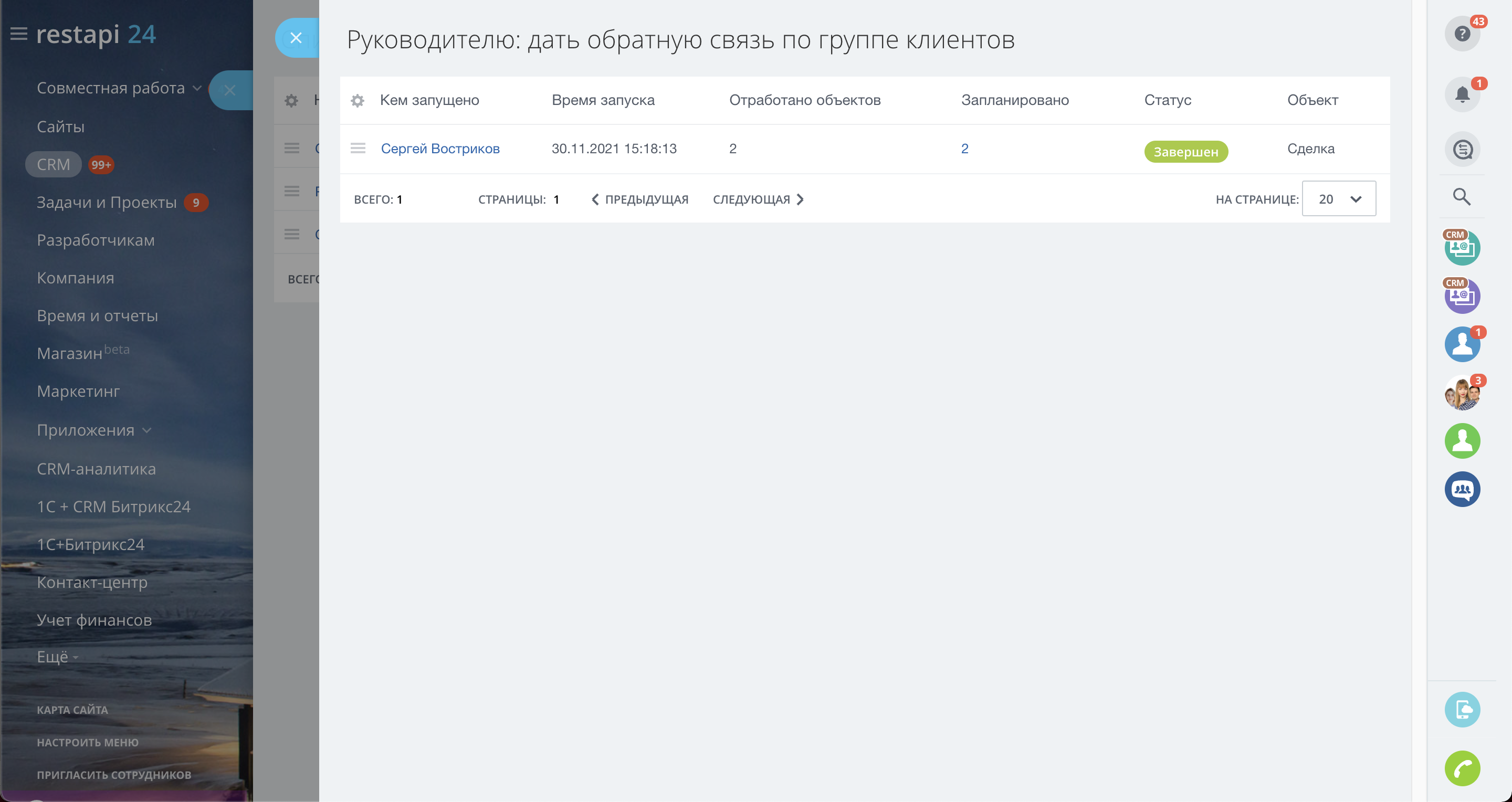 Быстрая отправка SMS группе клиентов, напоминание сотрудникам и лёгкое подключение наблюдателей к нескольким сделкам сразу