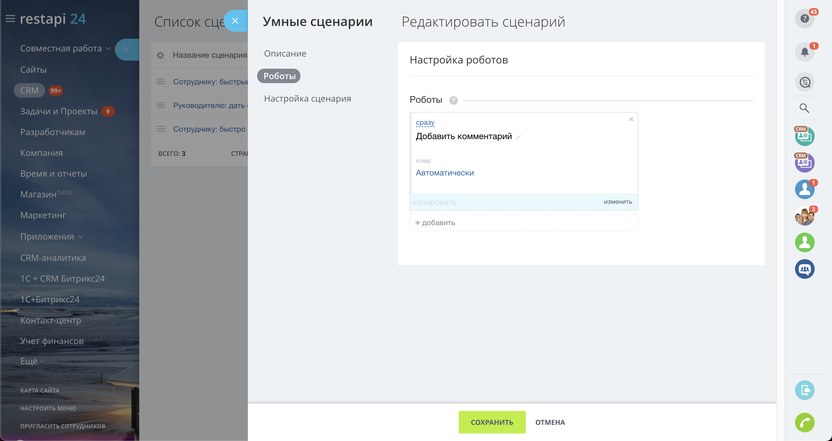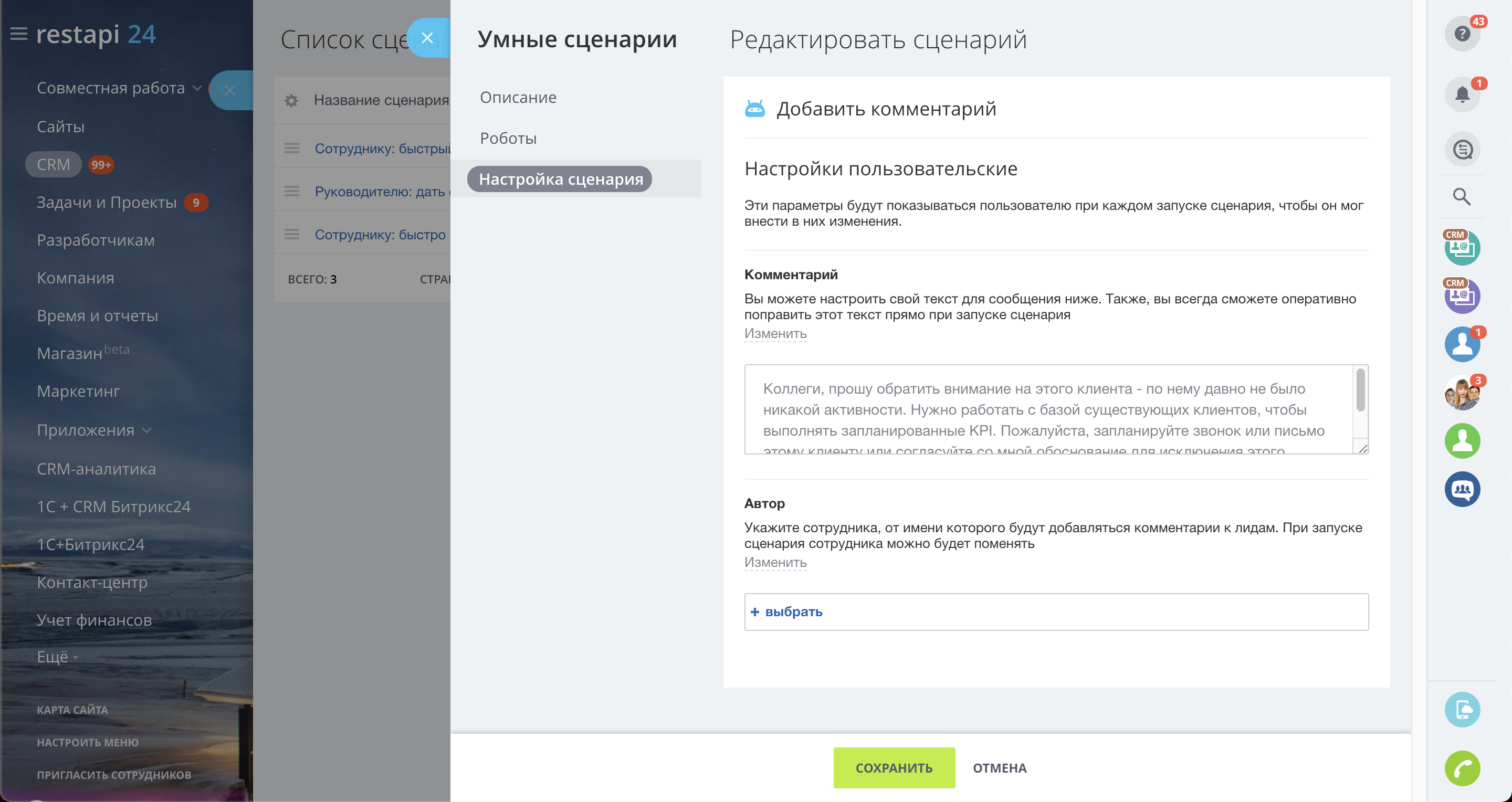 После установки зайдите в настройки каждого сценария и убедитесь, что все опции вас устраивают. Не забудьте настроить SMS-провайдер в Контакт-центре, чтобы использовать сценарий с отправкой SMS!