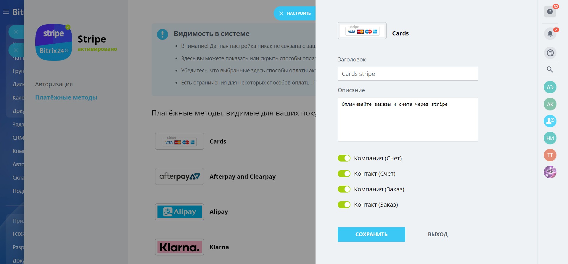 Интеграционное решение позволит вашим клиентам оплачивать счета и заказы через платежный агрегатор Stripe.