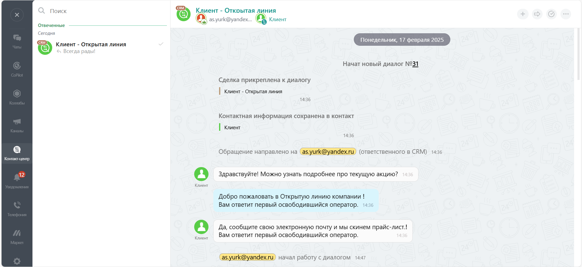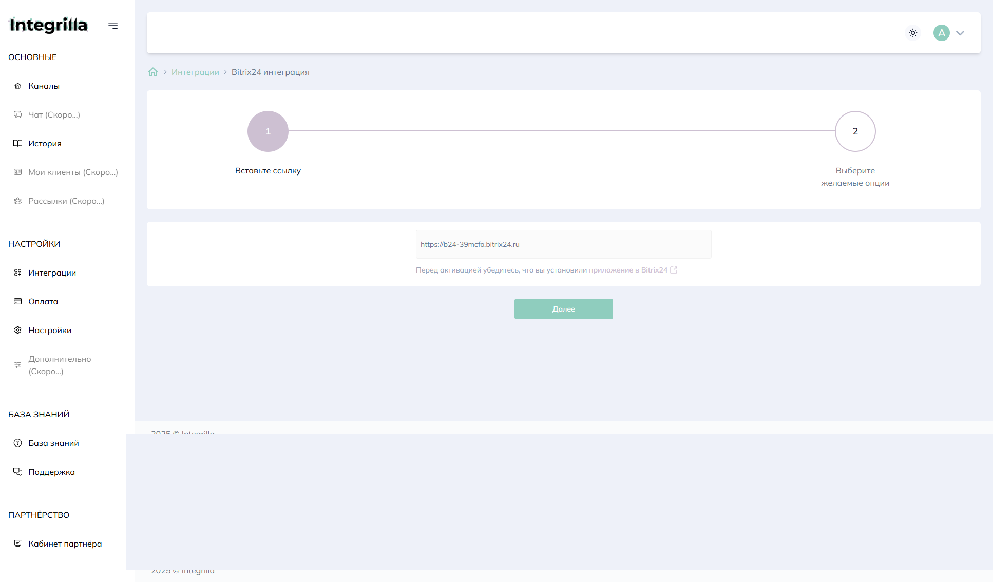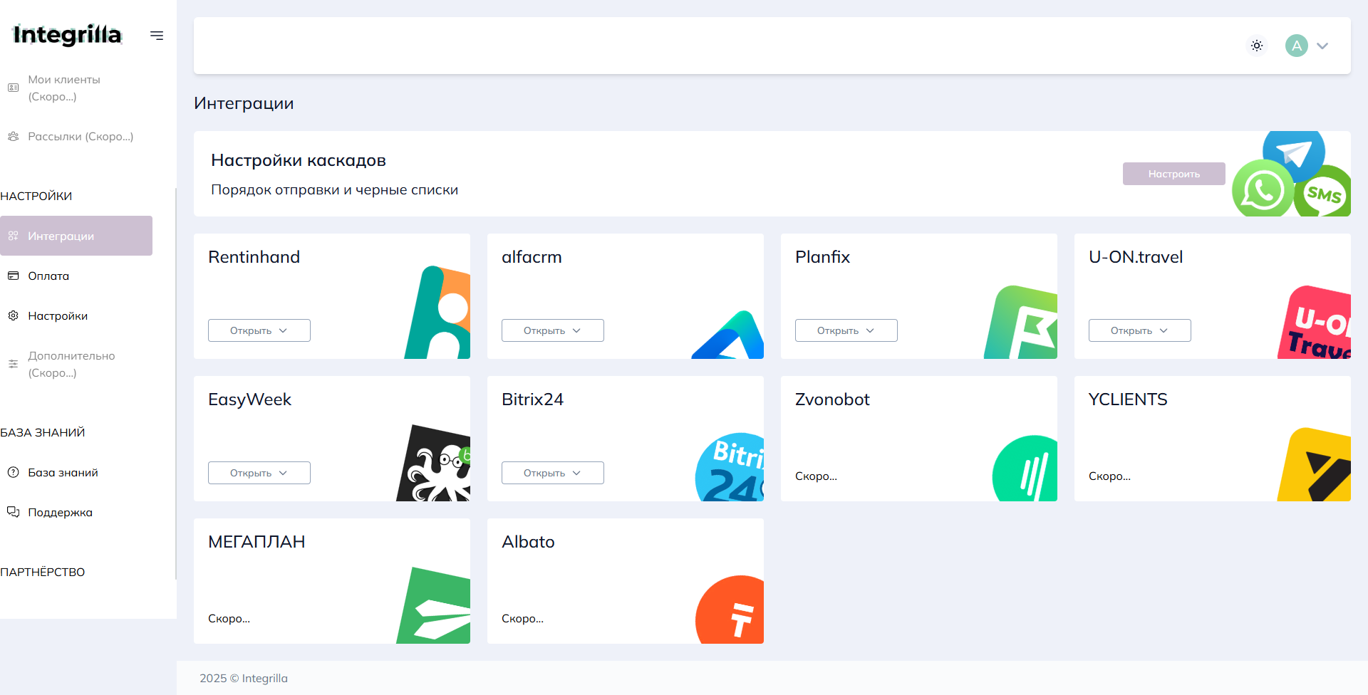 - WhatsApp или Telegram (на выбор) - получение сообщений в открытой линии и отправка сообщений из ОЛ в выбранный мессенджер - 1490₽