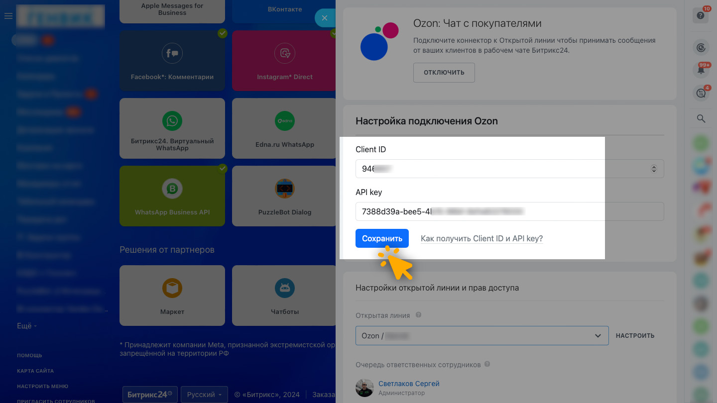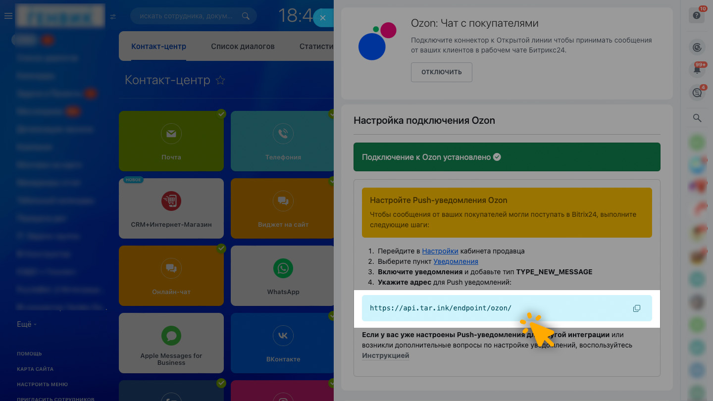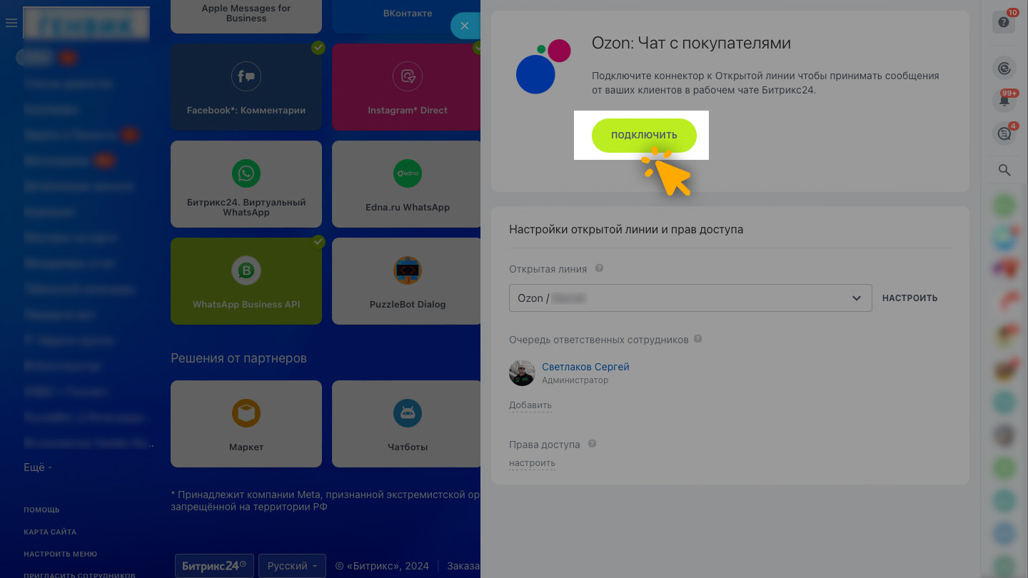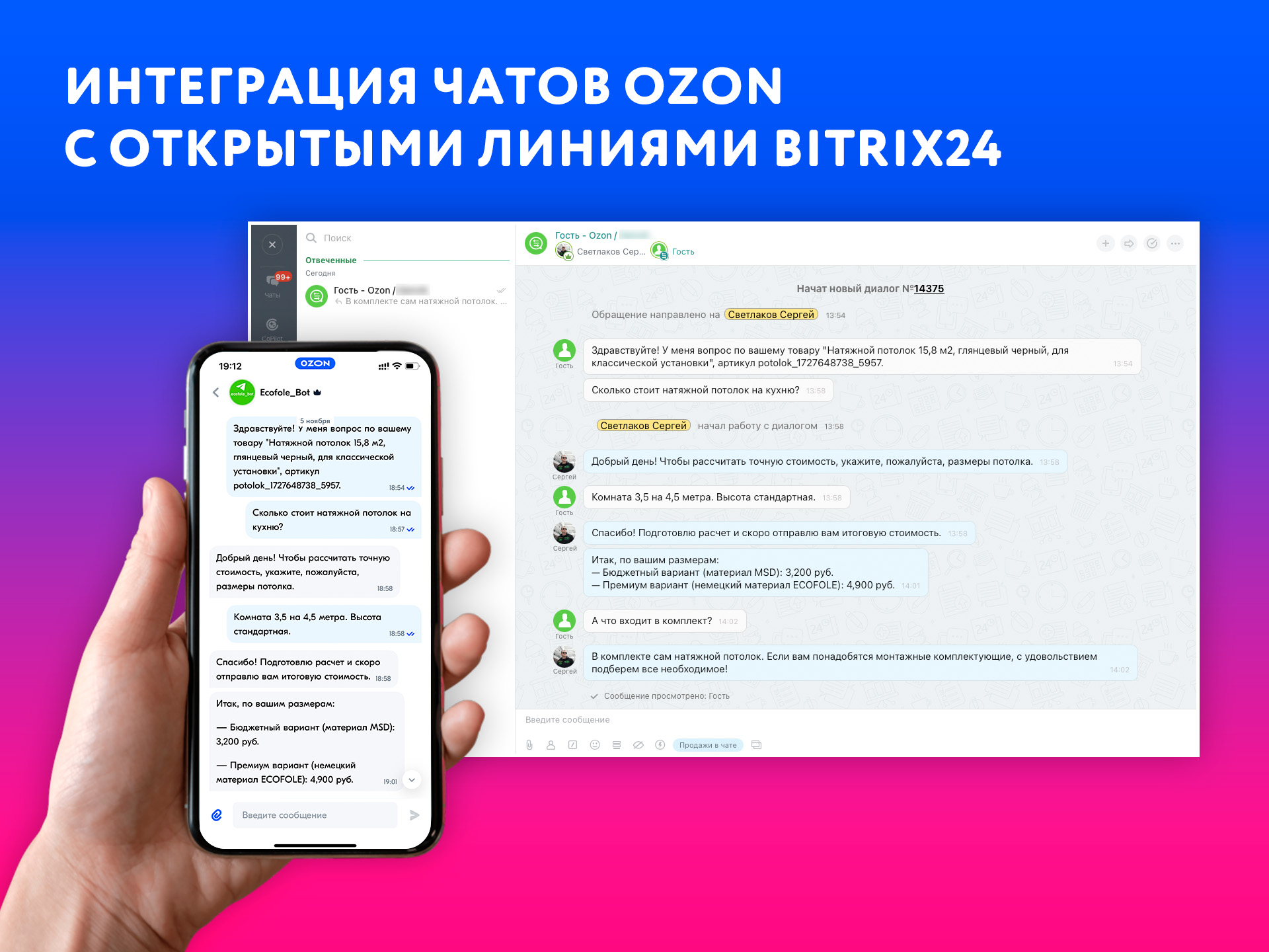 Интеграция чатов Ozon с открытыми линиями Bitrix24 позволяет управлять коммуникацией с покупателями в едином интерфейсе, автоматически синхронизируя переписку и данные для повышения качества обслуживания и автоматизации процессов с помощью чат-ботов и ИИ-ассистентов.