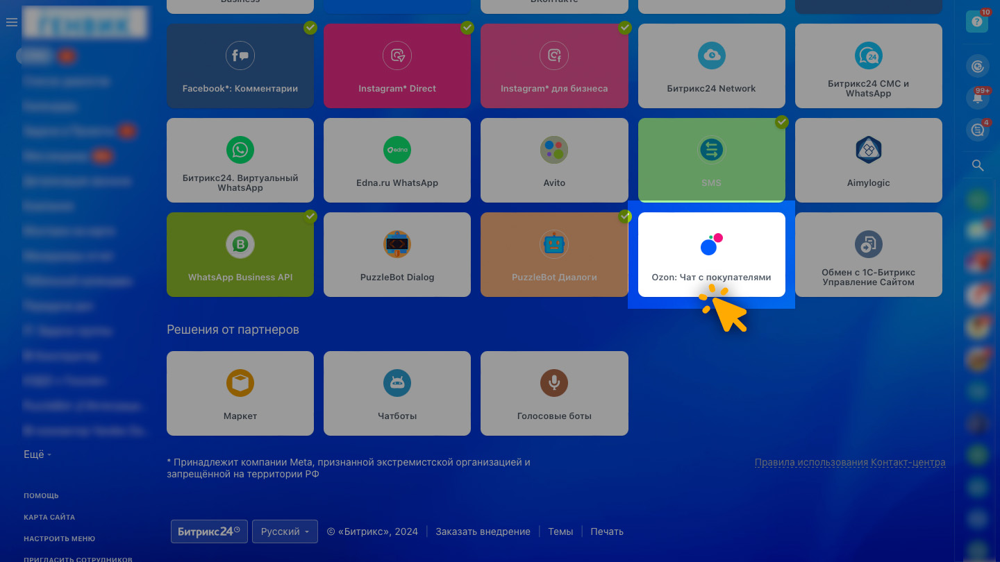 - Настраиваемые сценарии общения — возможность комбинировать сценарии общения Ozon с бизнес-процессами Bitrix24 для индивидуального подхода к каждому клиенту.