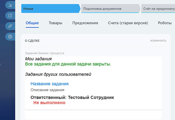 Помимо этого выводится информация, есть ли незавершенные процессы у других сотрудников, или все связанные задания закрыты.