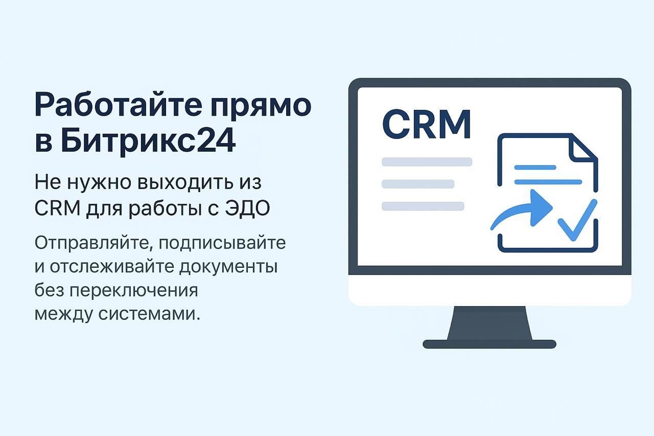 Ускорение сделок: Документы отправляются, подписываются и поступают в CRM мгновенно, не дожидаясь обработки бухгалтерией.