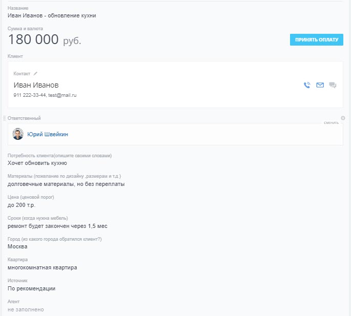 В данном решении Битрикс24 настроен под специфику индивидуального изготовления мебели. Вы сможете отслеживать статус каждой сделки - поступление, замер, дизайн, производство, монтаж, рекламации и пр.