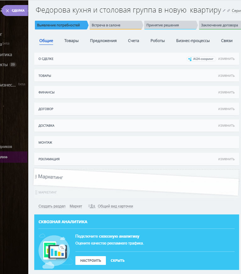 - Повысить внутреннюю эффективность компании за счет налаженных процессов и контроля над каждой сделкой