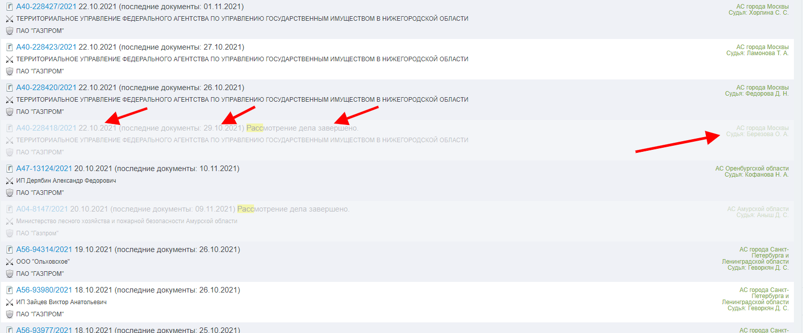 3 Отслеживание завершения дела
