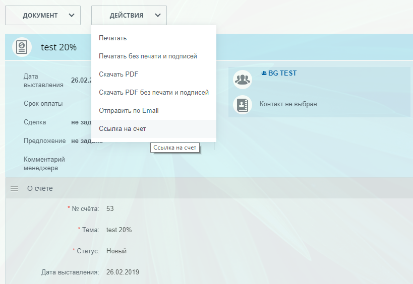 - Интеграция оплаты счета с помощью системы "Робокасса" на выставляемые счета