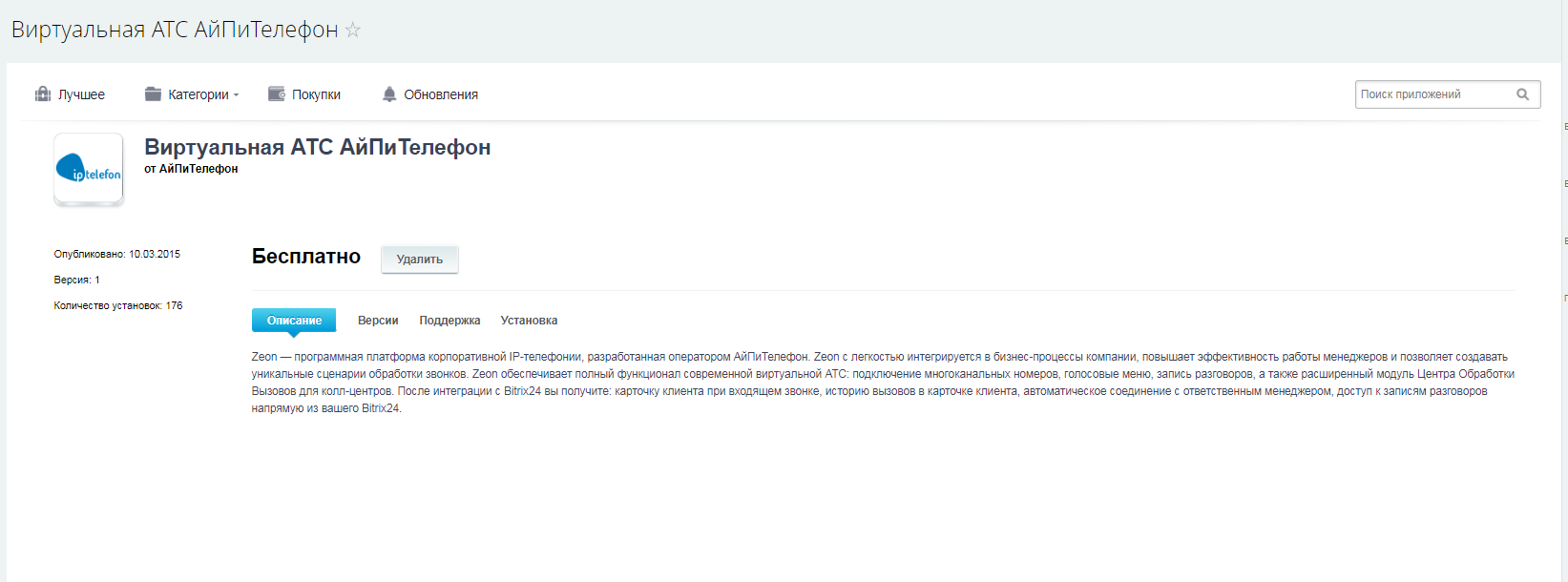 Zeon — программная платформа корпоративной IP-телефонии, разработанная оператором АйПиТелефон. Zeon с легкостью интегрируется в бизнес-процессы компании, повышает эффективность работы менеджеров и позволяет создавать уникальные сценарии обработки звонков. Zeon обеспечивает полный функционал современной виртуальной АТС: подключение многоканальных номеров, голосовые меню, запись разговоров, а также расширенный модуль Центра Обработки Вызовов для колл-центров. После интеграции с Bitrix24 вы получите: карточку клиента при входящем звонке, историю вызовов в карточке клиента, автоматическое соединение с ответственным менеджером, доступ к записям разговоров напрямую из вашего Bitrix24.