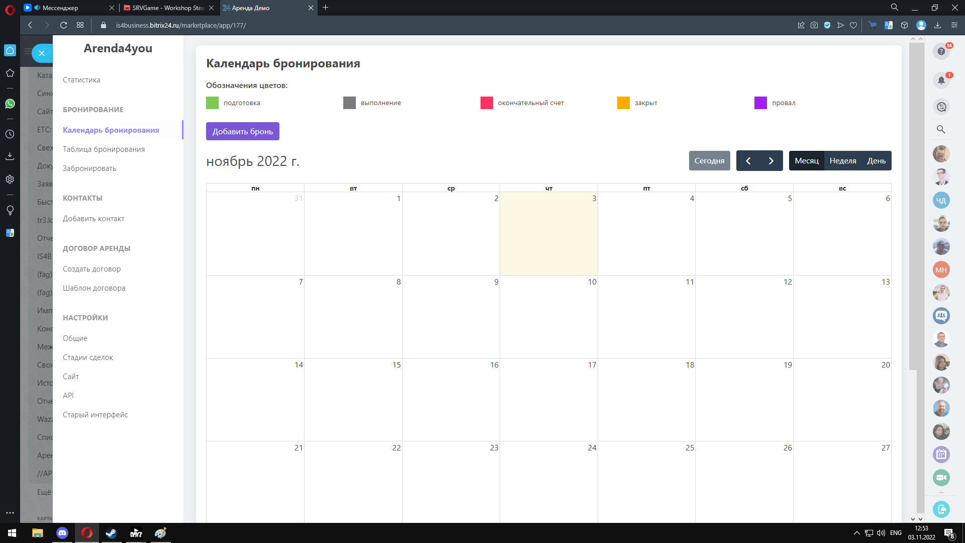 • На вкладке «Отчёт» представлен календарь занятости арендуемых объектов