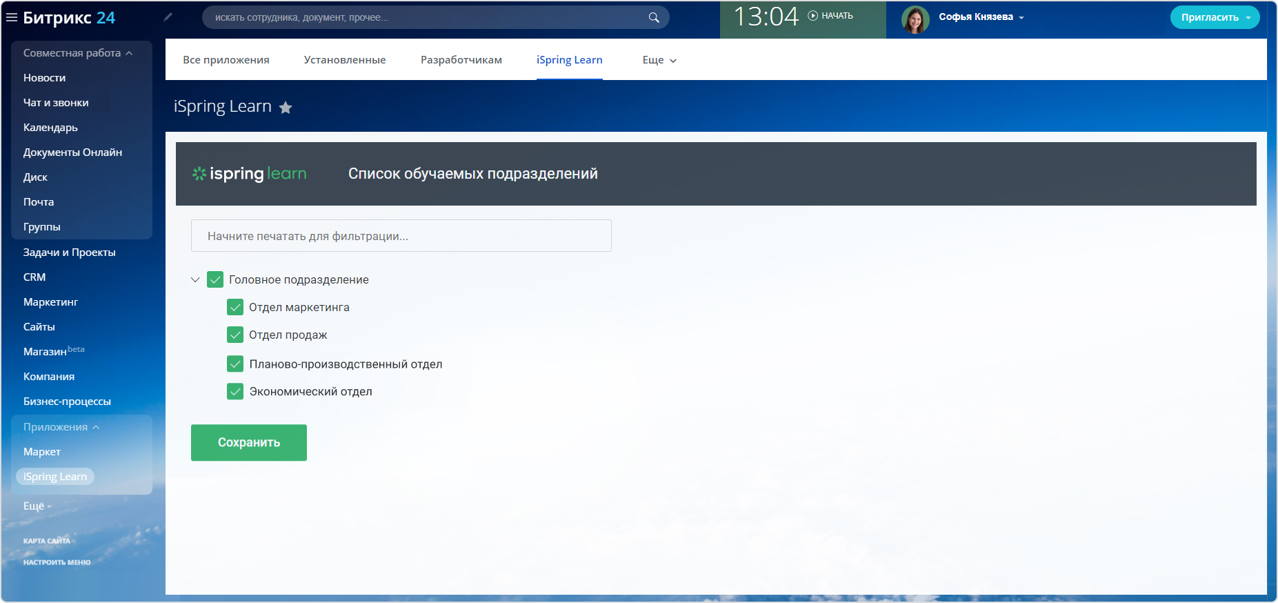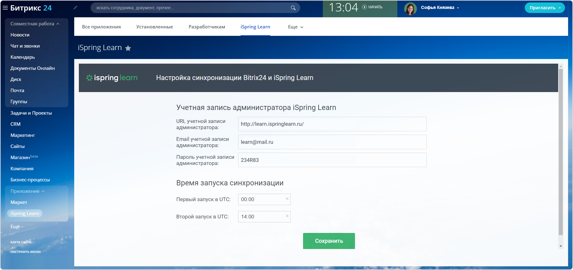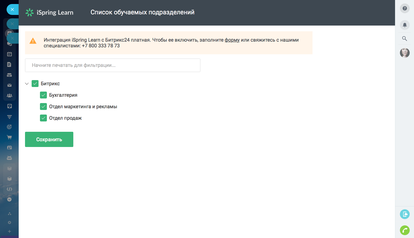 Модуль синхронизации iSpring Learn для 1С-Битрикс24