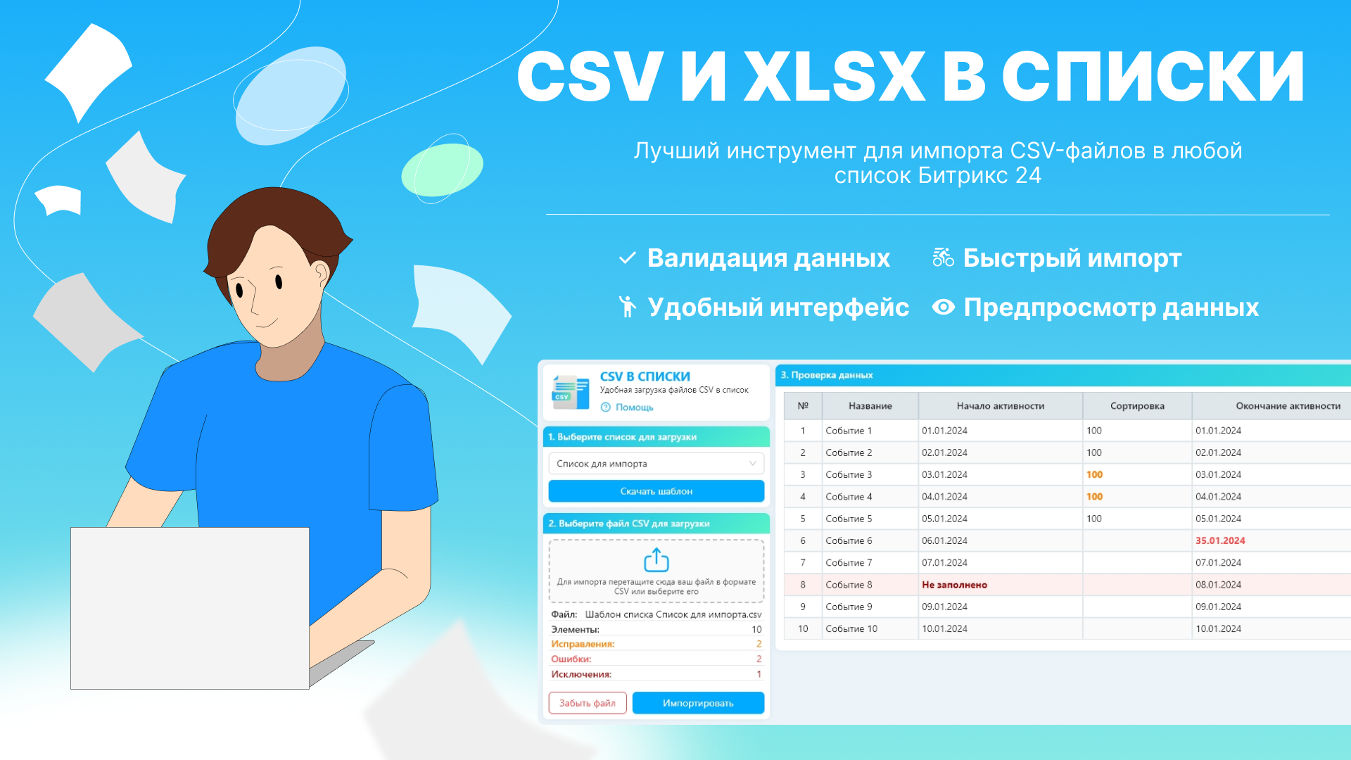 CSV и XLSX в Списки — это удобный инструмент для быстрой и эффективной загрузки и обновления данных. С его помощью вы можете легко импортировать большие объемы информации в ваши списки Битрикс24 за несколько простых шагов.