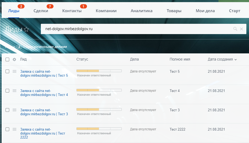 Приложение позволяет принимать заявки от компании "Мир без долгов" в вашем Битрикс24.