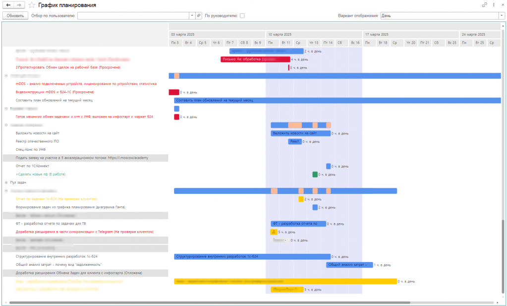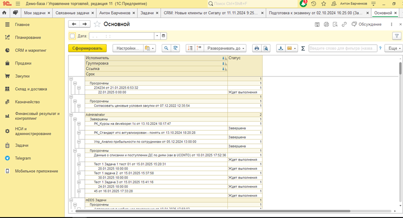Отчет в 1С по действующим задачам сотрудников и их загруженности позволяет руководству компании получить полную картину их текущей работе. Это помогает оптимизировать рабочий процесс, повышает эффективность компании и помогает снизить издержки.