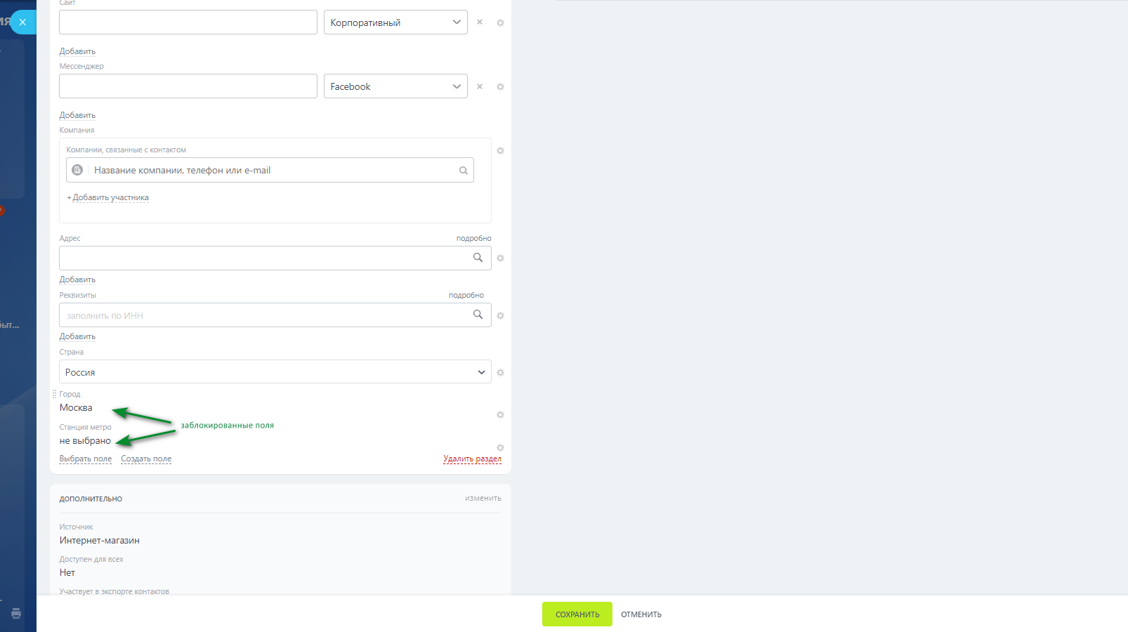 Поля остаются заблокированными только для ручного редактирования. Изменение значений посредством роботов, бизнес-процессов и сторонних интеграций остается возможным после установки модуоя.