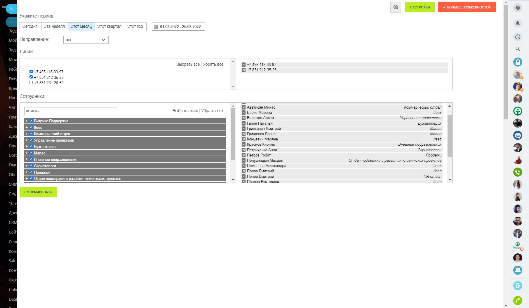 3. Отделы и определенных сотрудников Вашей компании для показа в отчете