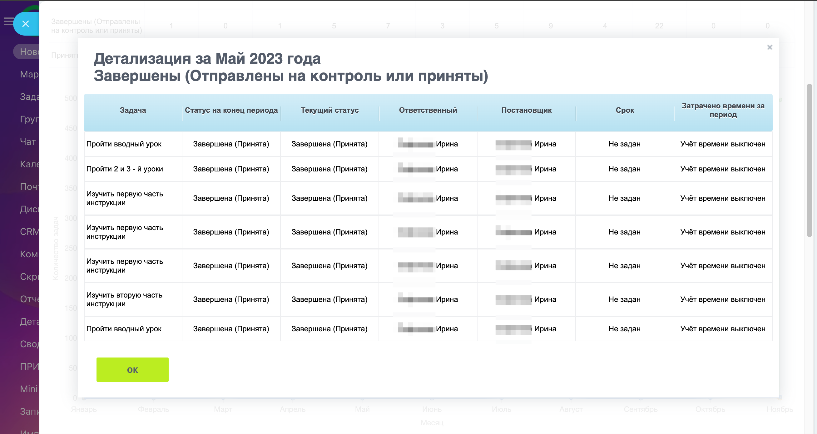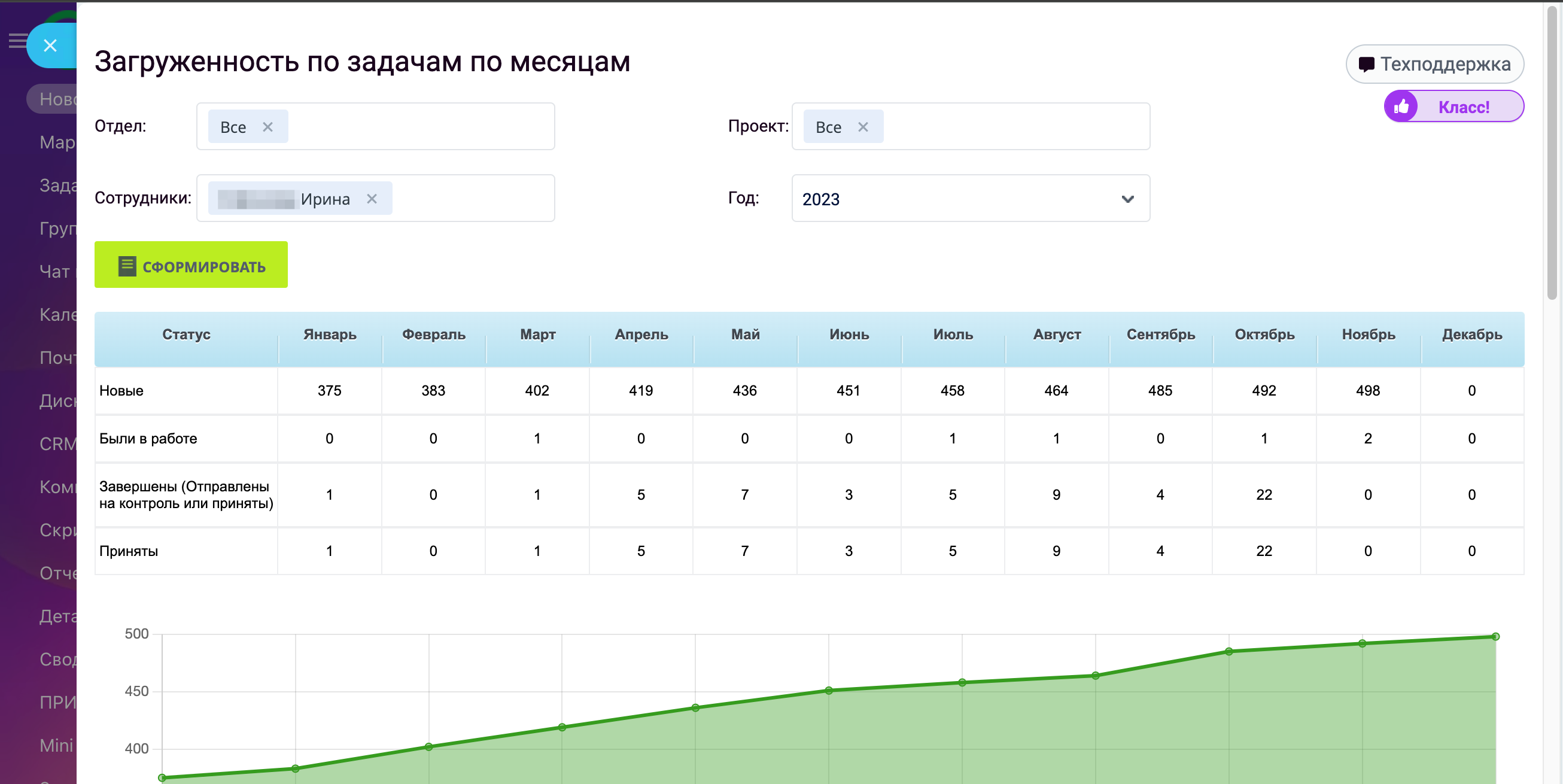 - Новые - здесь будет показано количество задач, которые уже были созданы в анализируемом месяце, но к которым так и не приступили