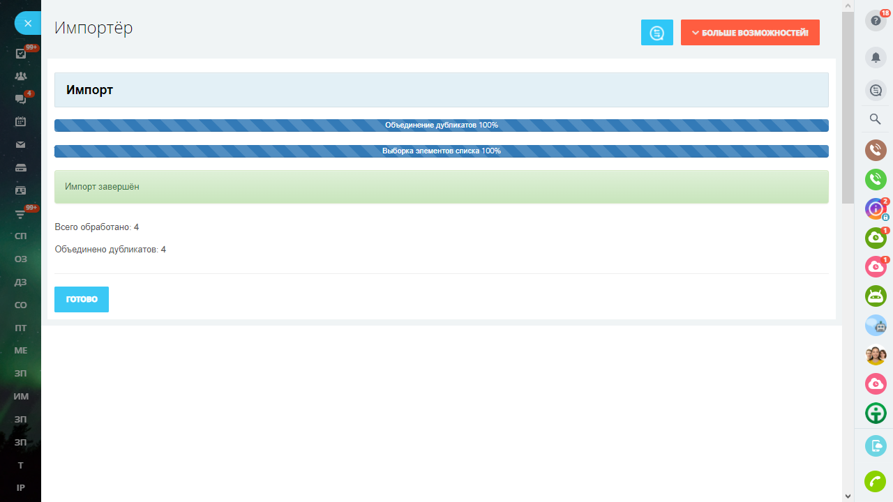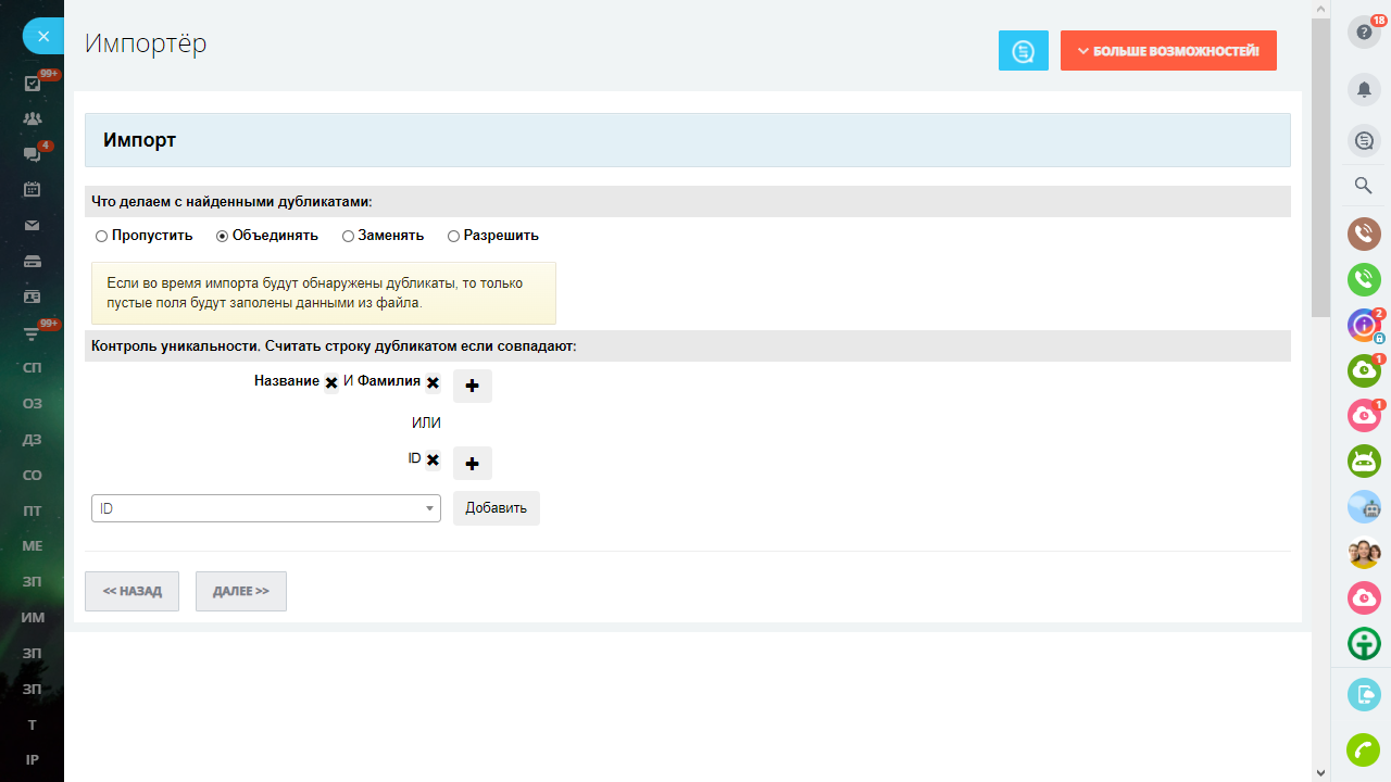 Перед импортом рекомендуется сделать резервную копию компаний/списков.