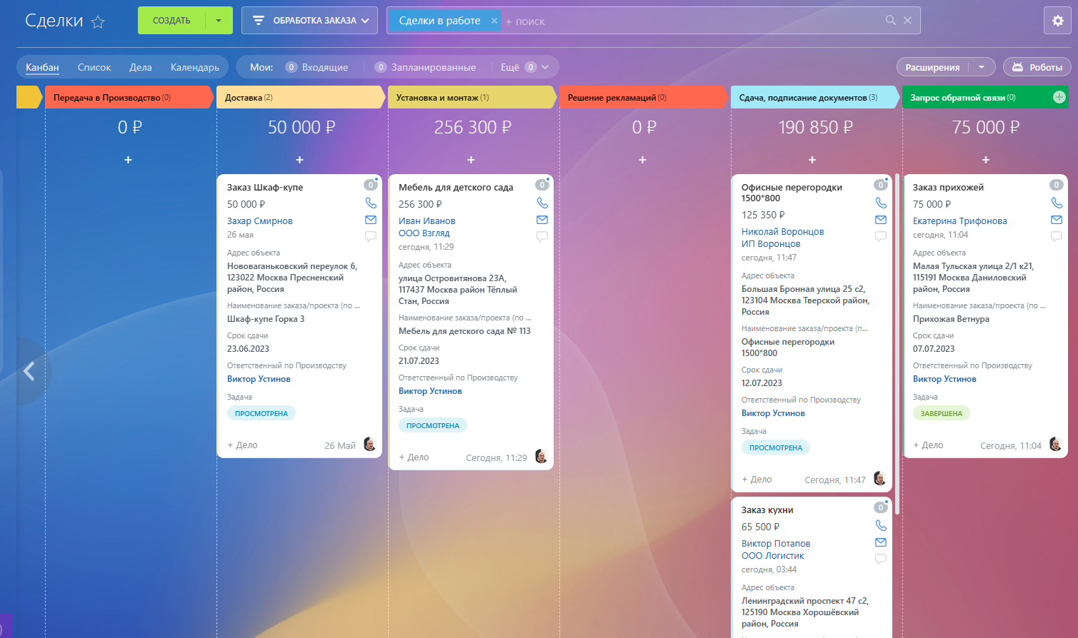 - Контролируются все источники коммуникации с клиентом и получения заказов.