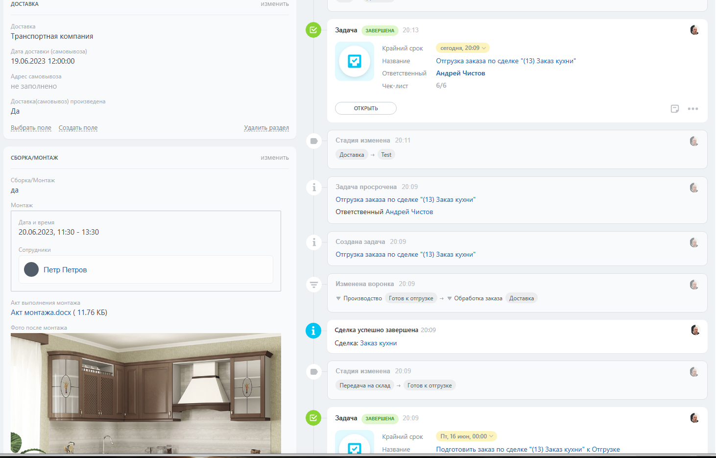 Есть возможность создавать отдельные представления полей сделки для разных категорий сотрудников (продающие менеджеры, производство, монтажники и т.д.).