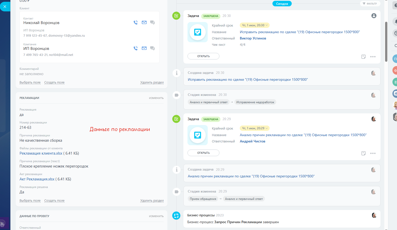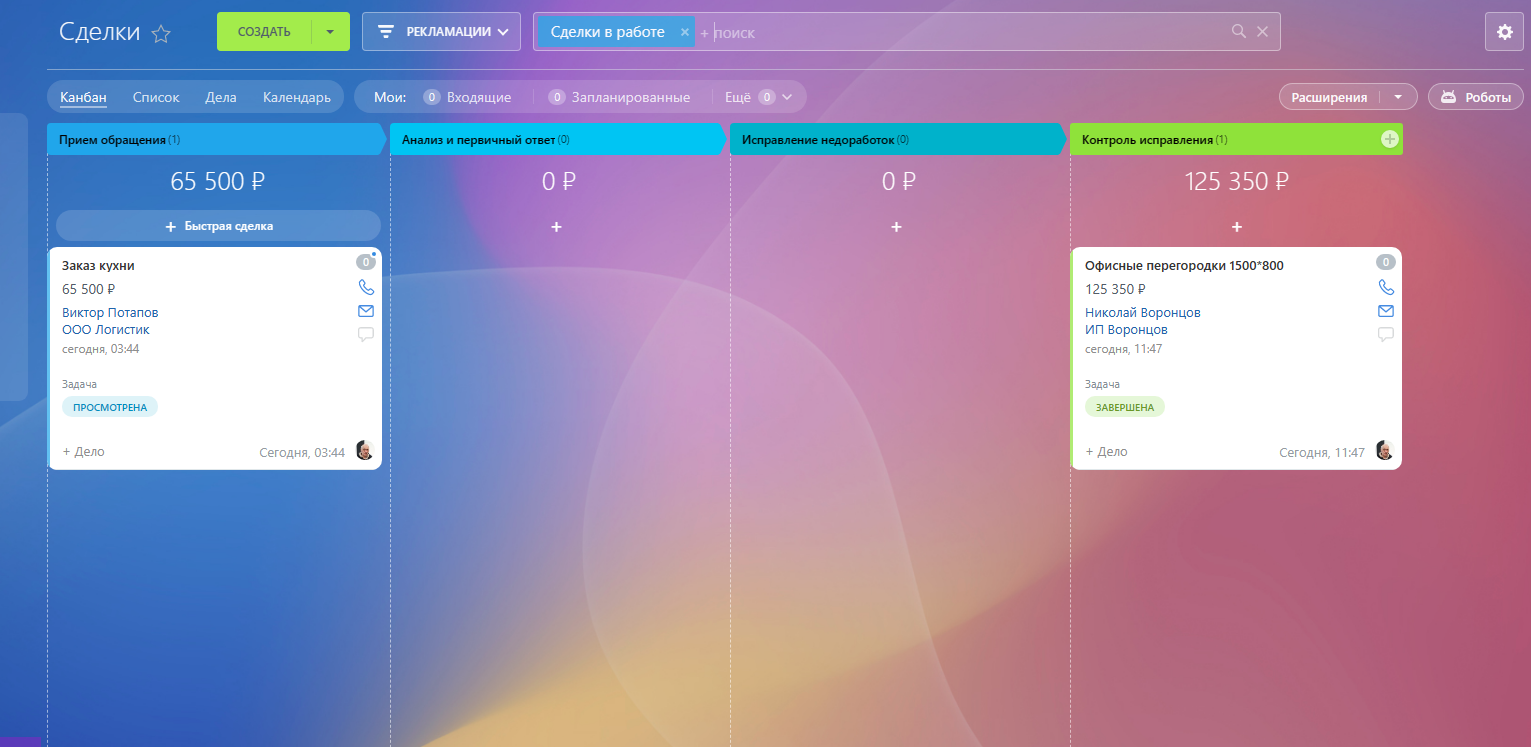 - В случае получения рекламации по заказу CRM позволяет своевременно зафиксировать и решить возникшие проблемы, а также проконтролировать весь процесс решения рекламации по заказу